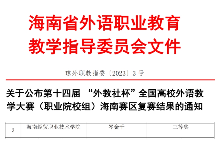 我院青年教师指导学生荣获2023年海南省职业院校技能大赛英语口语赛项佳绩