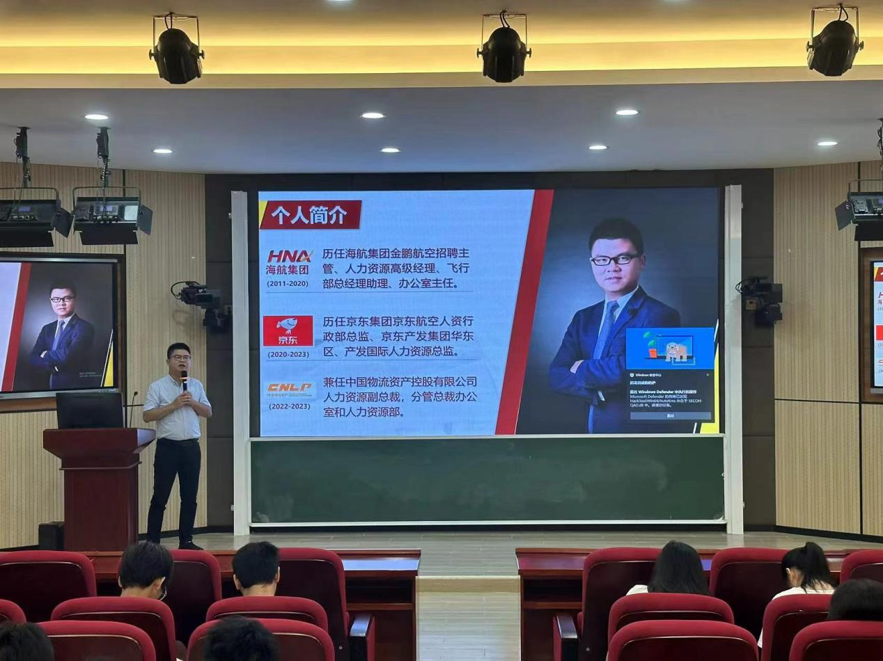 2009届毕业生,现任京东产发集团华东区、产发国际人力资源总监、兼任中国物流资产控股有限公司人力资源副总裁,分管总裁办公室和人力资源部。讲座从求职准备、在职建议、跳槽考量三个方面分享。资校友通过自身求学参赛就业经历,和大家分享职业生涯规划,并赢得了全场掌声。最后在校学生针对求学和未来发展的困惑,提出几个问题,资总一一做了回答与讲解。通过这次讲座,帮助同学们树立了专业信心,同时也为同学们指明了未来努力的方向。