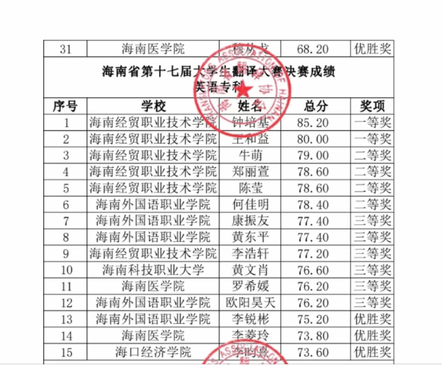 2024年海南省翻译比赛喜报