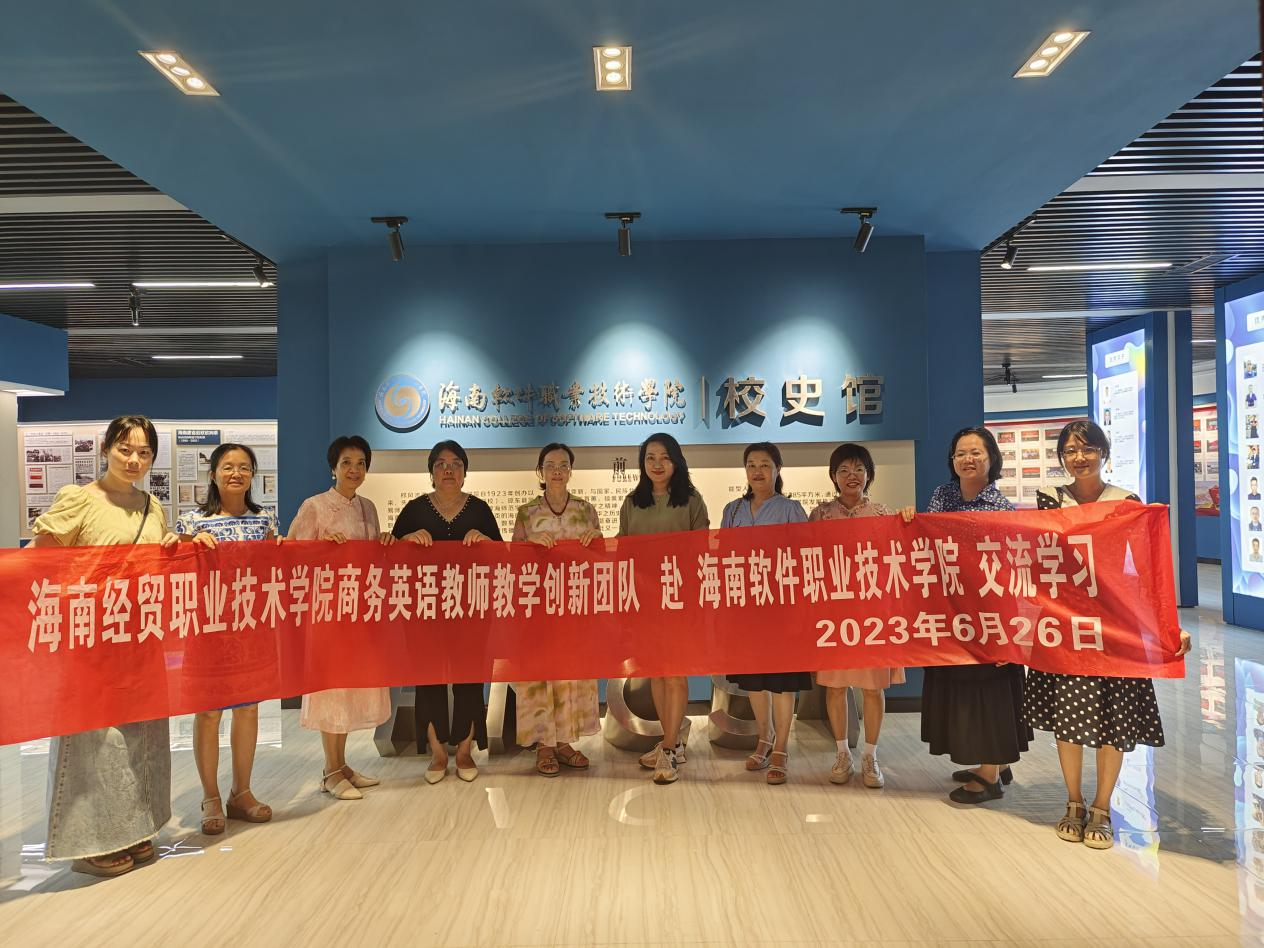 为更好地推进创新团队建设,2023年6月26日,国际教育学院黎瑛副院长、刘莉副院长率领商务英语教师教学创新团队成员一行10人赴海南软件职业技术学院开展校际交流活动。在此次交流活动中,国教院创新团队成员参观了海南软件职业技术学院的校史馆,了解海南软件职业技术学院的百年建校历史和成就;与海南软件职业技术学院国际教育与旅游学院国际旅游专业群教师教学创新团队进行了深入的交流座谈,学习了兄弟院校创新团队建设的宝贵先进经验与成功做法。此次校际交流活动极大地推进了国教院创新团队建设的进一步优化改进,在促进团队总结、凝练团队建设成果及转化,高质量完成团队建设任务方面发挥了积极作用。