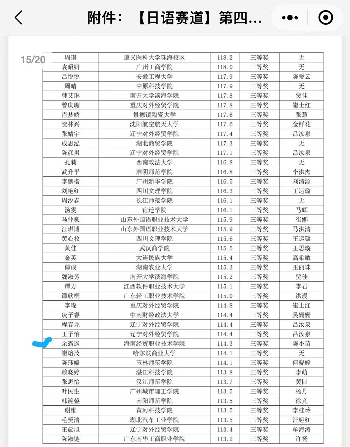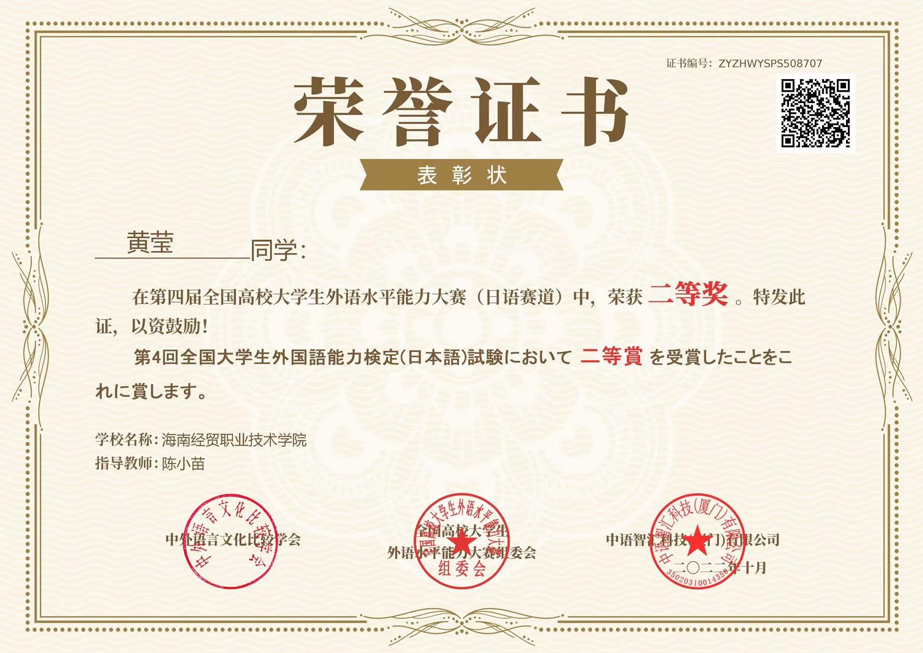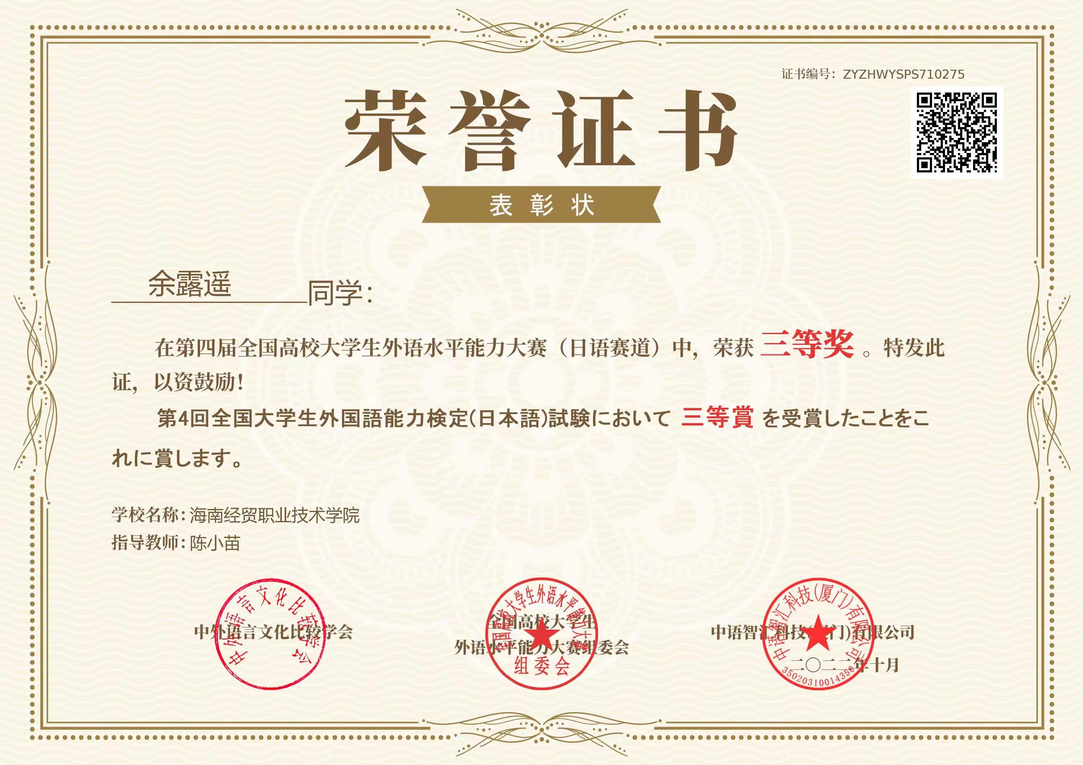 日语赛道,我院学生喜获二等奖1人,三等奖3人。指导教师:陈小苗。
