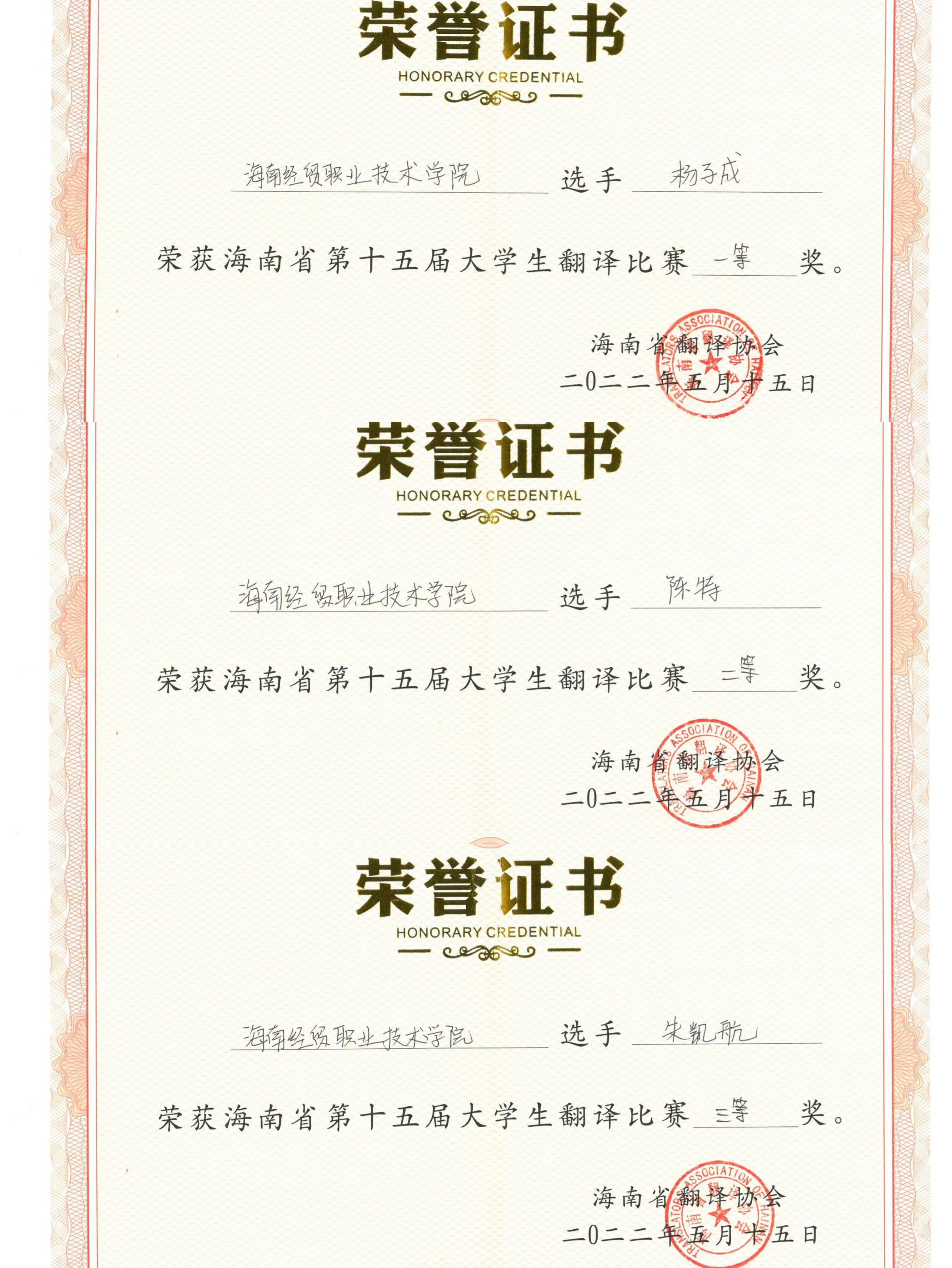 由海南省翻译协会主办的2022年海南省第十五届大学生英汉、日汉、俄汉翻译大赛于2022年5月15日在海口经济学院举行。来自全省十几所本科和专科院校的213名大学生参加了本次比赛。