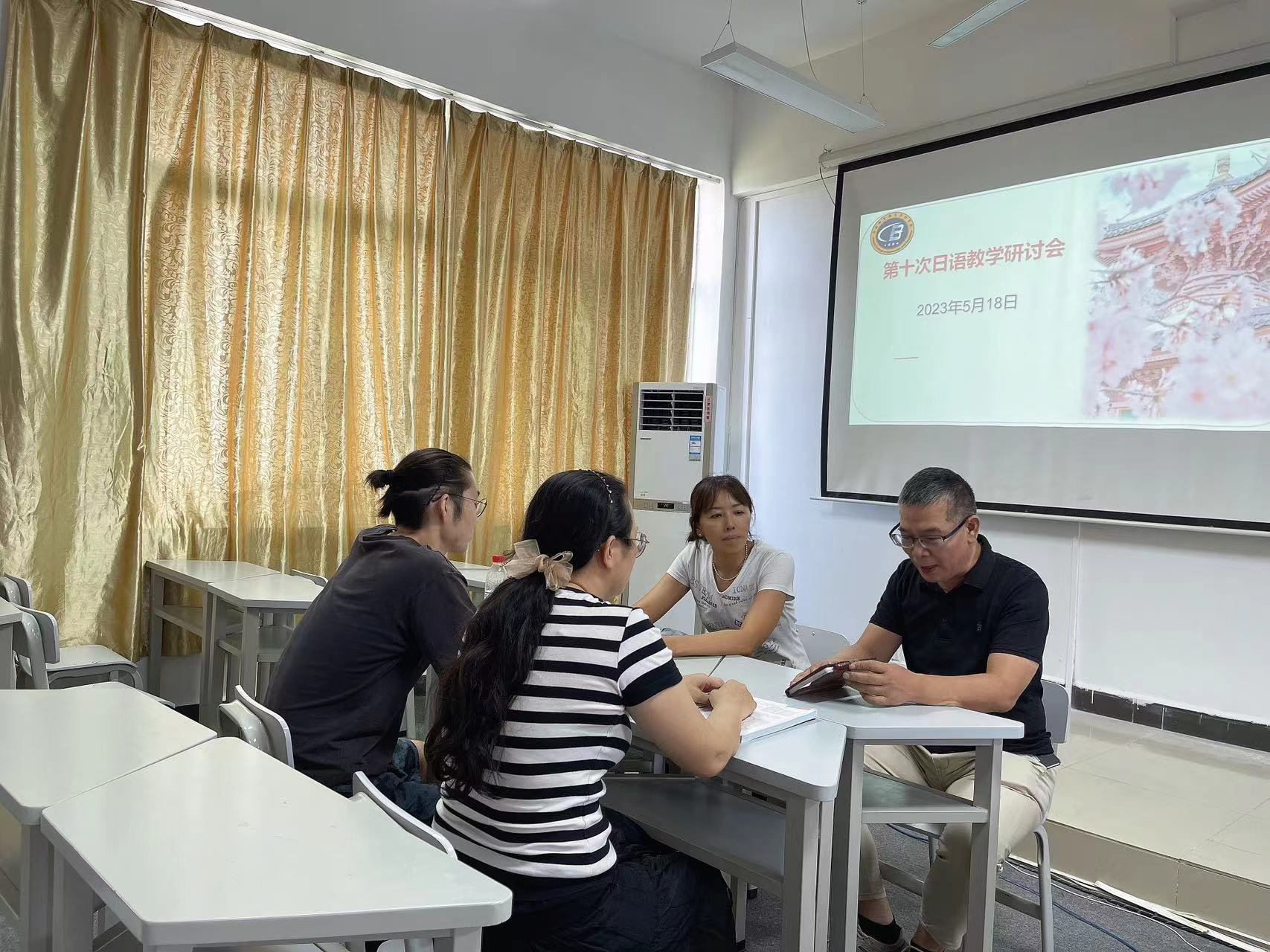 2023年5月18号中午,本学期第九次日语教学研讨会于第一教学楼610教室召开。会议由应用日语专业负责人王耀义老师主持。