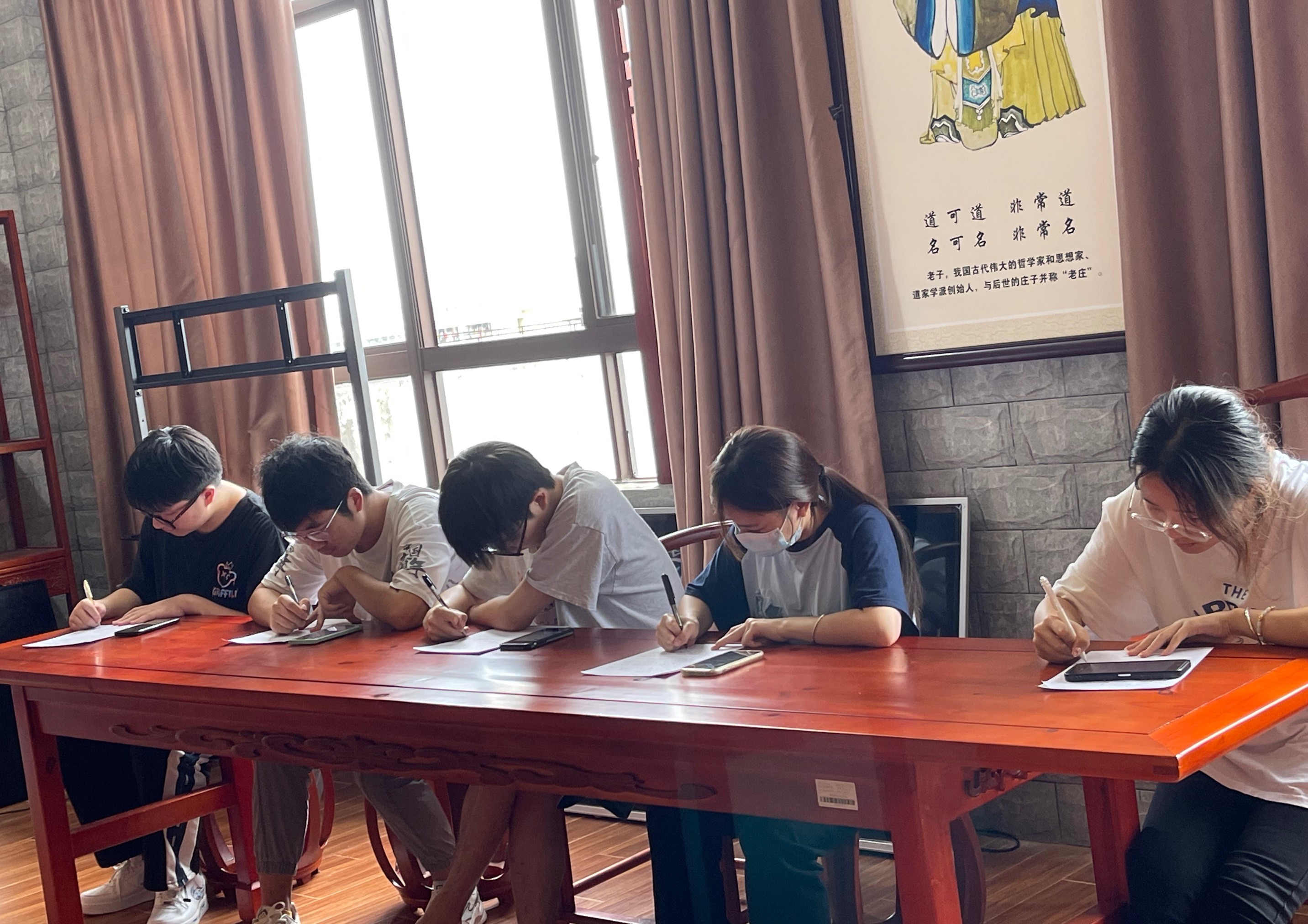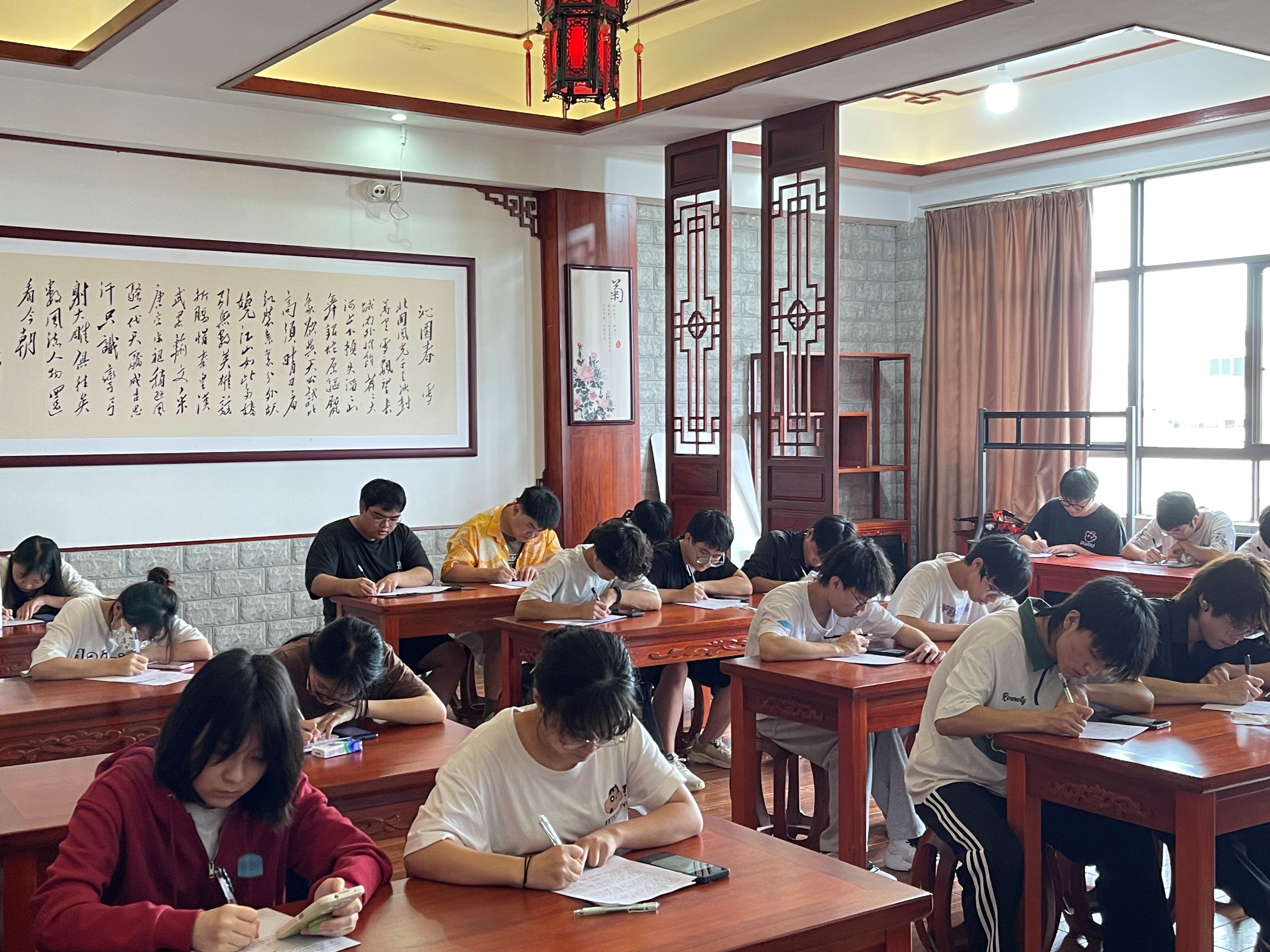 为了培养学生的文化自信,形成浓厚的学习氛围,丰富学生的第二课堂文化生活,2023年5月9日下午,在第一教学楼614教室举行了“海经贸第五届日语书法大赛”。