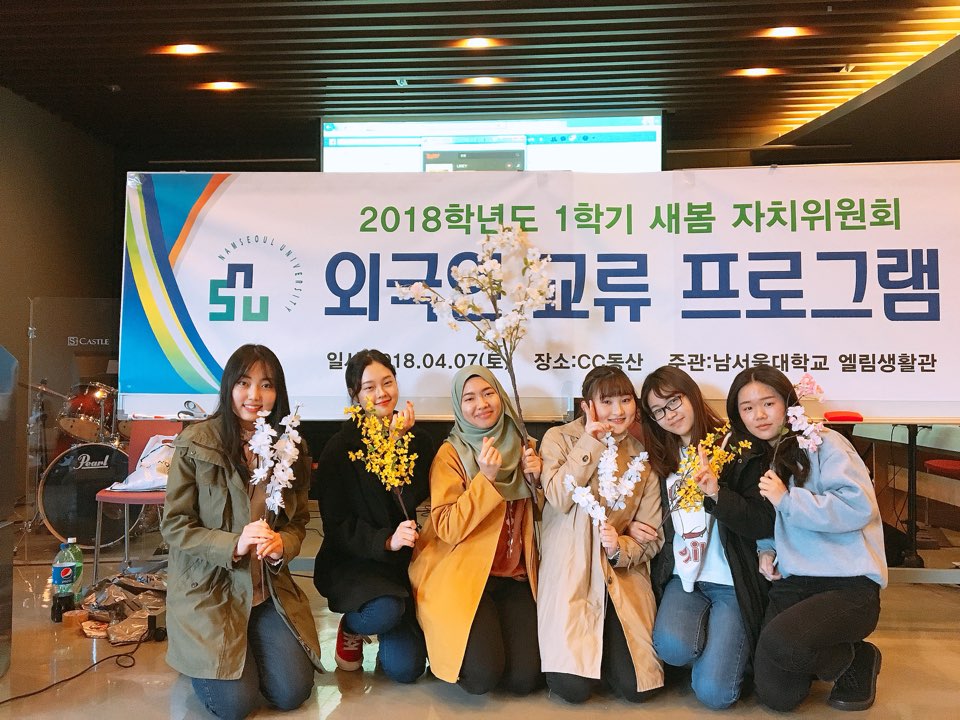 南首尔大学积极推进国际交流培养国际性人才,目前已经和美国、日本、中国、欧洲、俄国、英国、印度尼西亚、法国、菲律宾、越南等世界著名大学建立了战略合作伙伴关系。我们课堂上也有来着越南,日本,哈萨克斯坦,吉尔吉斯斯坦等各国国家的同学们,我们一起学习,下课之后也经常一起吃饭一起互帮互助。学校为了促进留学生学习韩语以及适应留学生活,经常组织各种集体活动,组织中韩交流会,帮助我们交更多韩国朋友,促进语言学习的同时也促进两国人民友谊的建立,还有各种宿舍活动,宿舍运动会,宿舍烹饪兴趣会。我们也会积极参加,有趣的同时也能学到很多东西。期中考试之后学校为了促进我们的留学生活,还组织了一次游玩活动,带领我们去乐天世界游乐场,进行了一天的集体狂欢。