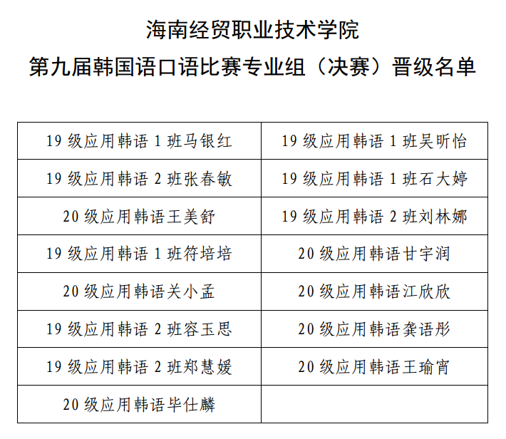 beat365第九届韩国语口语比赛专业组(决赛)晋级名单
