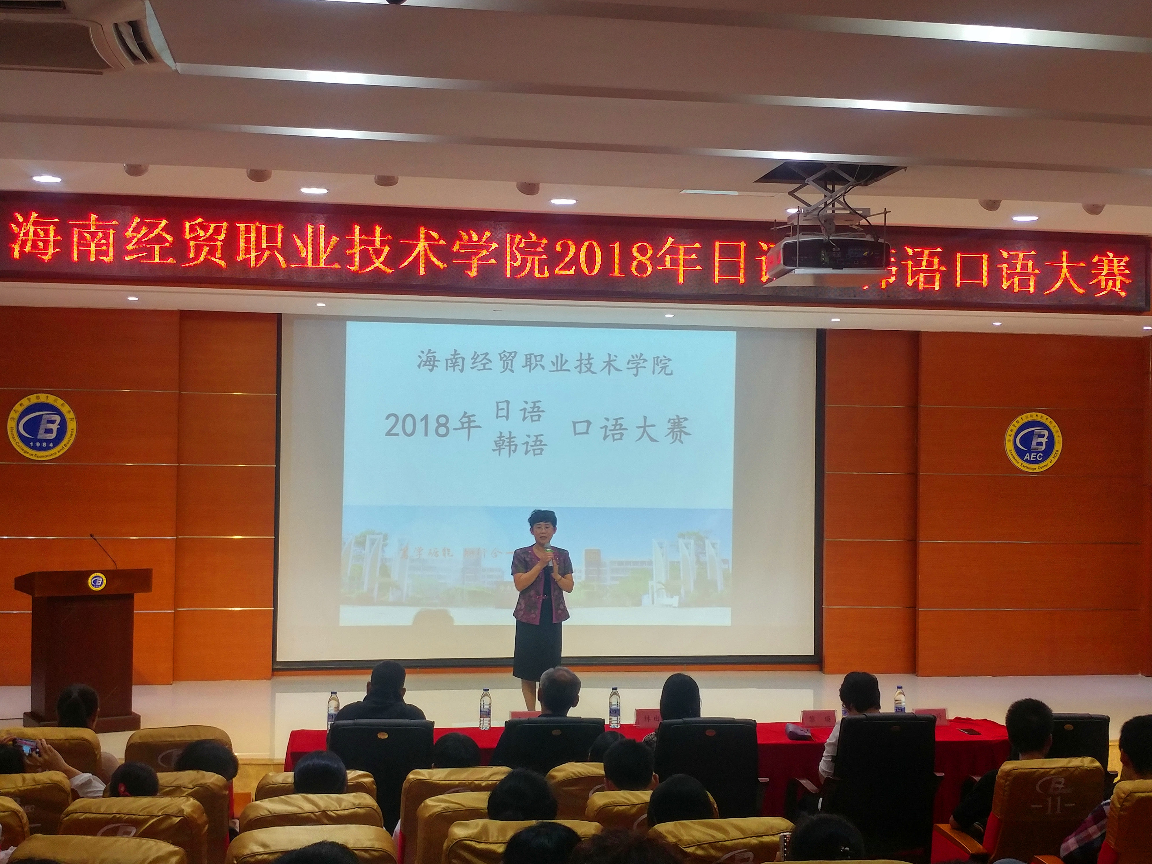 参加本次比赛的嘉宾有国际教育学院张春玲院长、黎瑛副院长;评委是来自海南师范大学的曹春玲教授,日语外教林由惠老师,韩语外教金永天老师以及本院应用日语和应用韩语专业的教师。