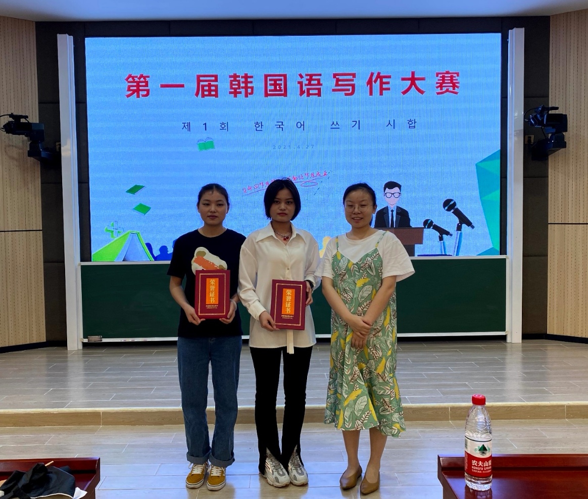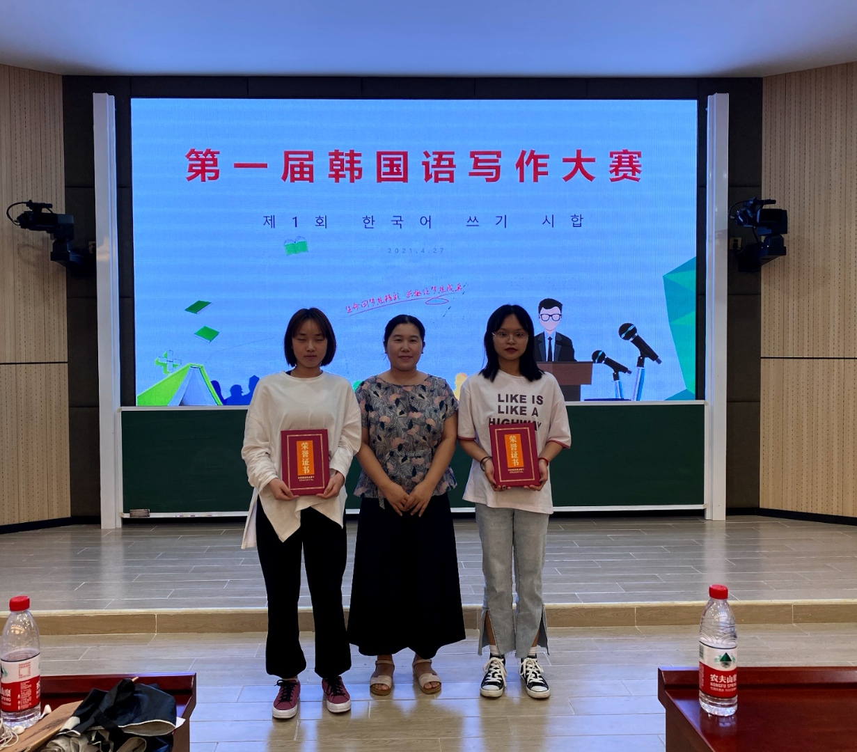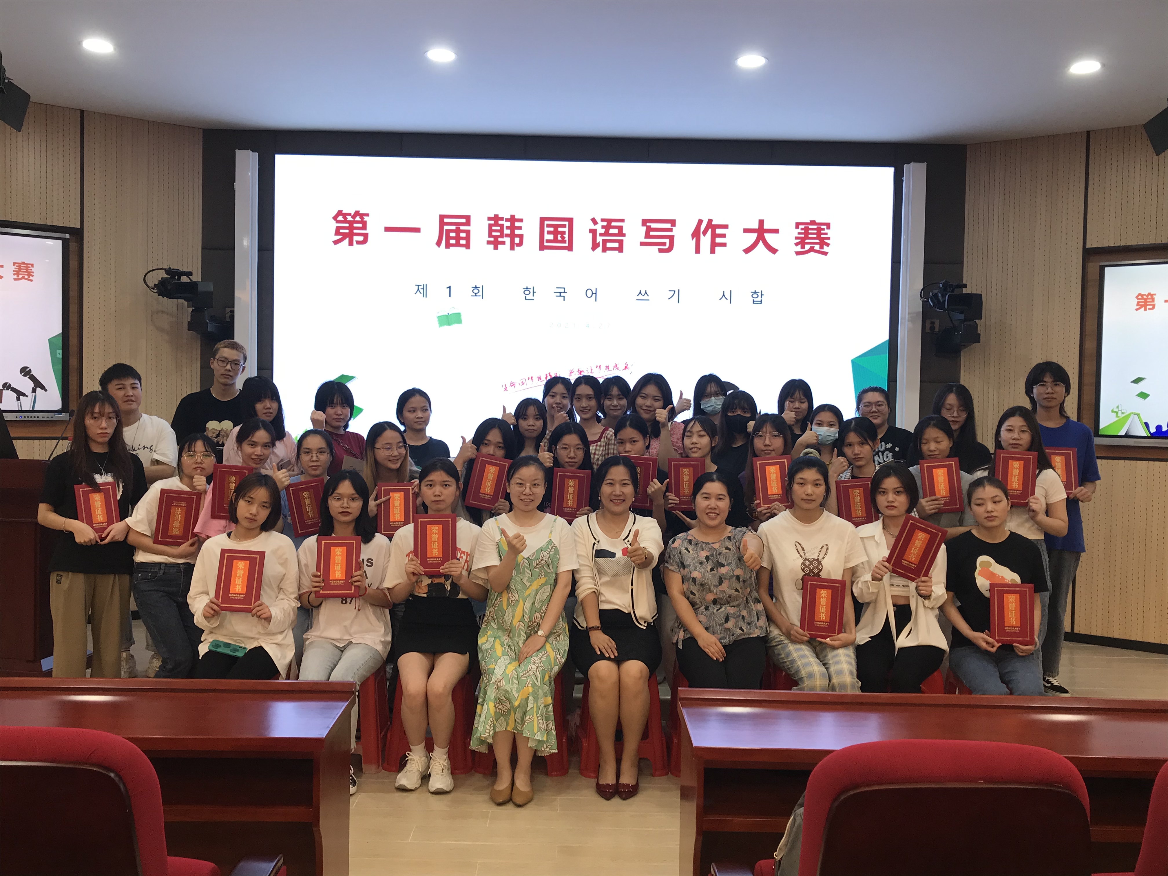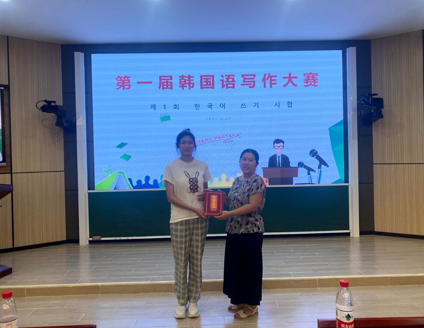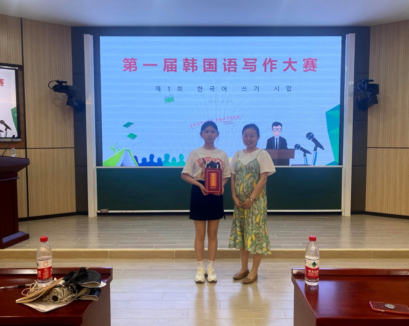 此次写作比赛为“四季”、“朋友”、“珍惜的物品”三个主题中选取之一进行写作。韩语专业41名学生报名参加竞选,在各展身手、文采飞扬下,2019级韩语2班文中张春敏同学和2019级1班马银红同学同时荣获一等奖荣誉。