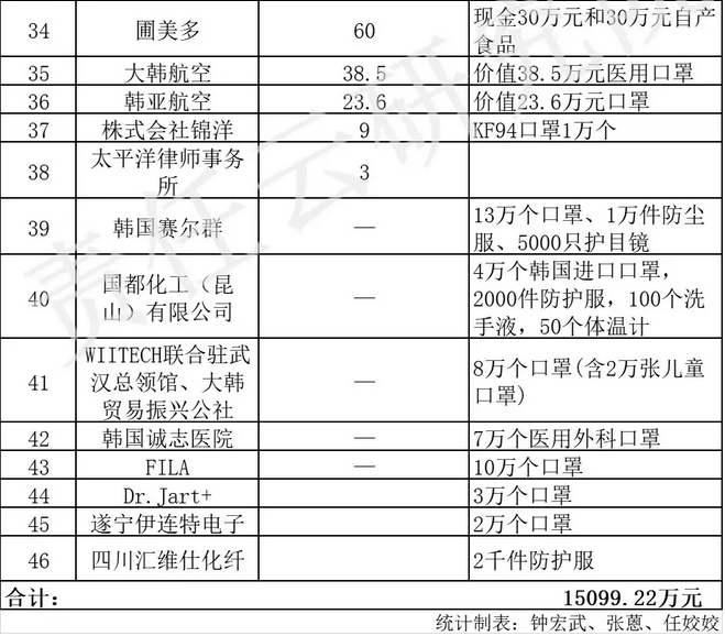 在接下来不到一个月的时间内,各大韩企捐赠额达到了15000多万元,这其中就有很多大家耳熟能详的企业。