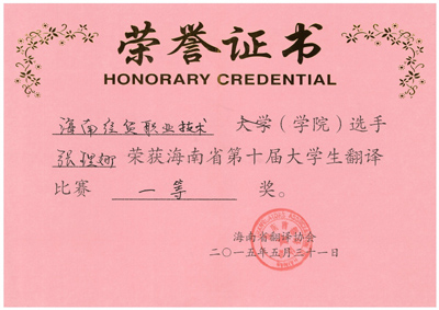 2015年5月31日,虽然是星期日,但大家起的都很早,因为这天我们要参加海南省外语协会组办的第十届外语翻译大赛。可能参与过几次这样隆重的活动、比赛,希望获得的同时,也学会了释怀。起初的那种紧张感已经不复存在,抱着一颗平常心,去迎接生活给予我的挑战。