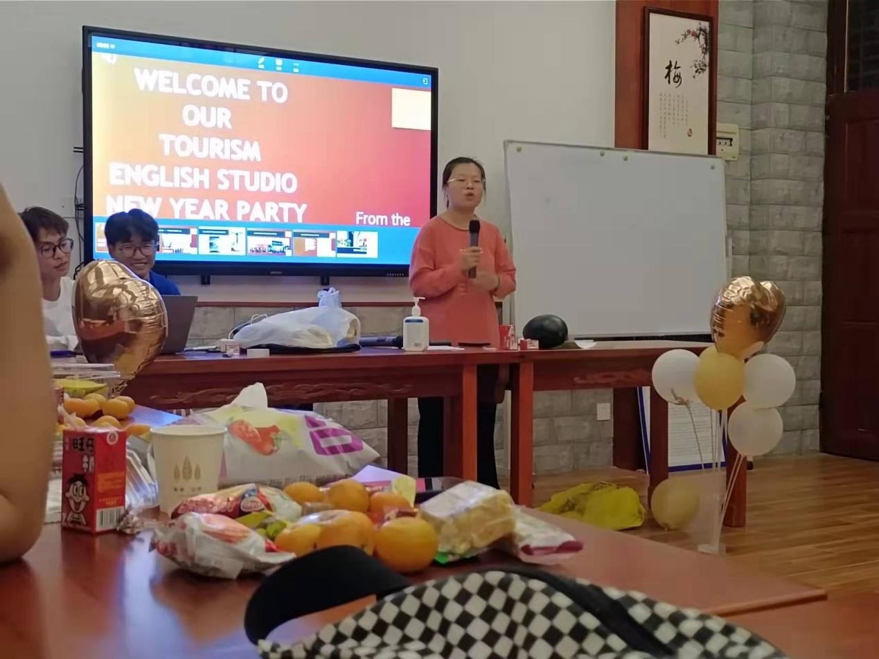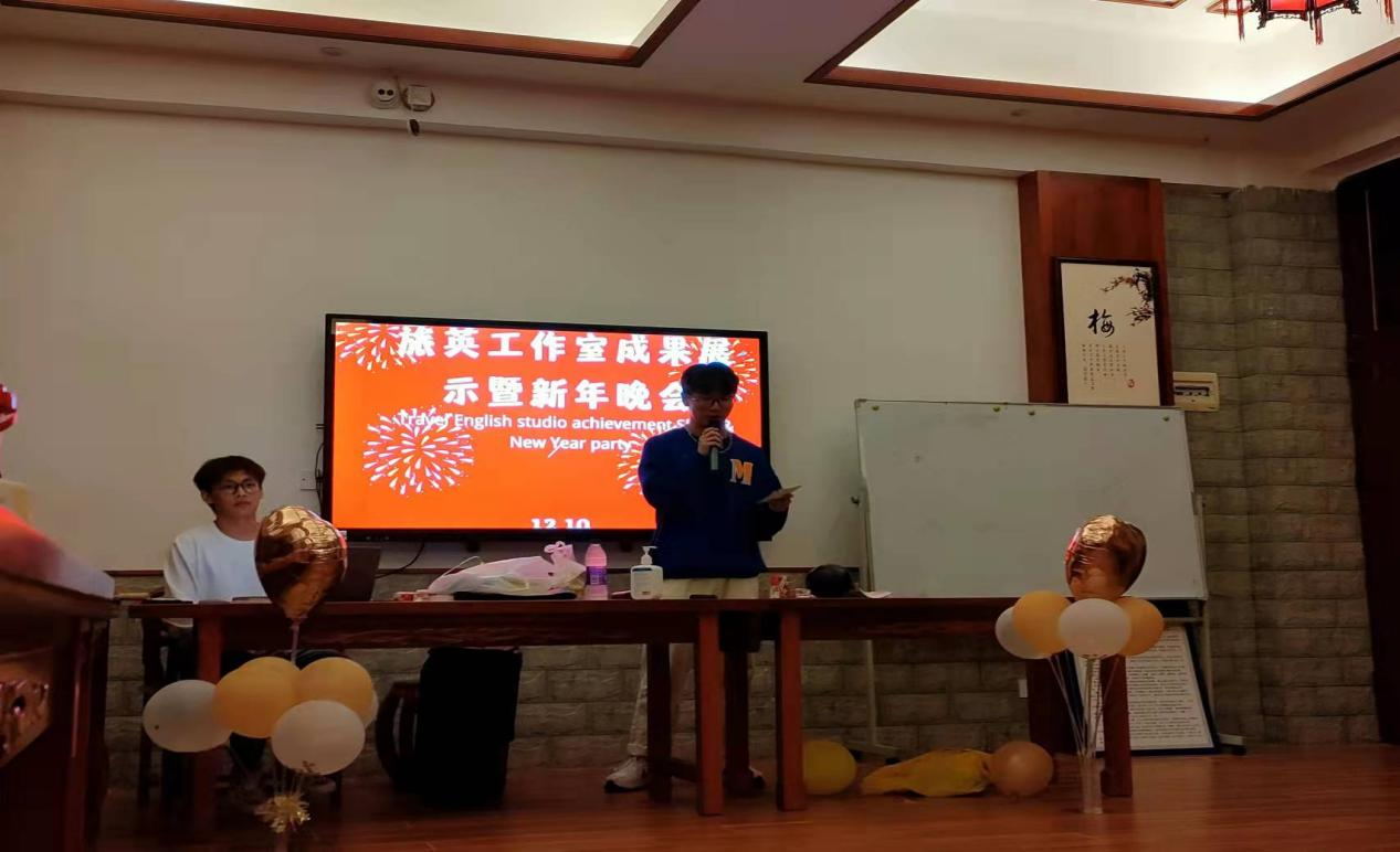 (旅游英语工作室宣传部报道)12月10日,当2021第二十二届海南国际旅游岛欢乐节在海口世纪公园拉开序幕之际,国际教育学院旅游英语专业学生工作室成果展示系列活动则在当晚落下帷幕。 本次成果展示系列活动由旅游英语专业学生工作室承办,系列活动分为英语邀请函比赛、英语名片创意比赛及各部门成果展示活动。两项比赛已于10日前结束,双语颁奖晚会及成果展示活动于12月10日晚进行。 该工作室倡导旅游+英语+技能+创新+素质为一体的展示模式,各部门全程热情投入,积极参与创作与展示活动,包括写英语脚本,制作PPT、音频和视频。宣传部的《李清照梦回海经贸》带领大家穿越时空,畅游校园,并进行现场英文采访,展示了旅游英语专业学生的职业风采。培训部的英语学习互动和游戏,掀起晚会一个小高潮。旅游部的旅游路线展示,让同学们领略了祖国大好河山,“世界很大,我们想去看一看”。美食部带来很多美食,同学们用英语介绍海南芒果,邀请大家一起品尝芒果。最后一个游戏环节吃西瓜比赛再次掀起晚会又一个高潮。“加油加油,快点吃,不要吐西瓜子”,整个会场洋溢着青春活力的欢声笑语。 各部门成果展示后,各宿舍也展示各自宿舍的风采。旅游英语专业负责人何春老师,班主任辅导员韩笑老师也分别为同学们表演古典舞和歌曲演唱,这两个保密节目给所有人带来惊喜,不断引发全场激动的尖叫声和雷鸣般的掌声。 这是一个努力奋进、提升英语技能的舞台,也是青春洋溢、激情荡漾的晚会,更是一次震颤心灵的永恒记忆