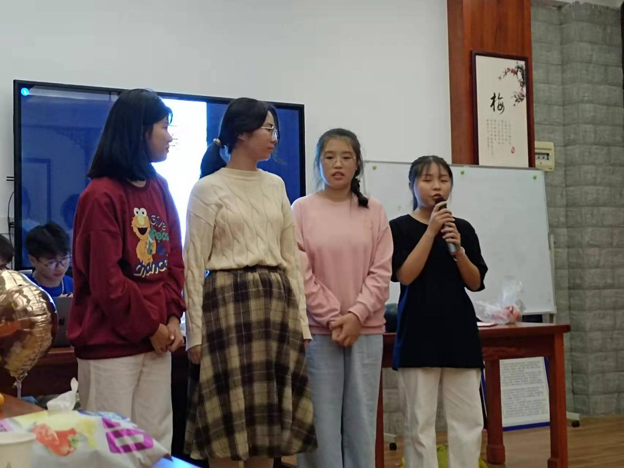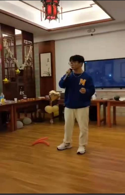 导演兼主持人王轩双语在主持,DJ黄奕林在默默工作。 你是否想过古人穿越海经贸会发生什么有趣的事情,宣传部门带来的《李清照梦回海经贸》。 他们的队名:绿叶,口号:Nothing is impossible. 队歌:团结就是力量。 美食部:芒果的吃法。