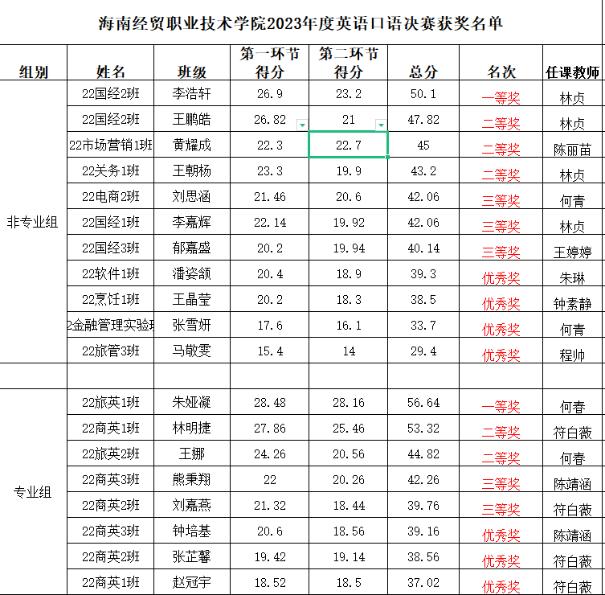 After a fierce competition, Zhu Yaning from Class 1, Grade 22 of Tourism English and Wang Na from Class 2, Grade 22 of Tourism English respectively won the first and second prizes in the professional group!