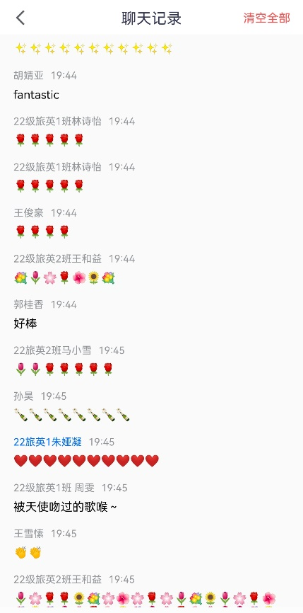 同学们在公屏上扣出了各种表情,给所有表演的人加油打call!现场气氛到达顶点,好不热闹!