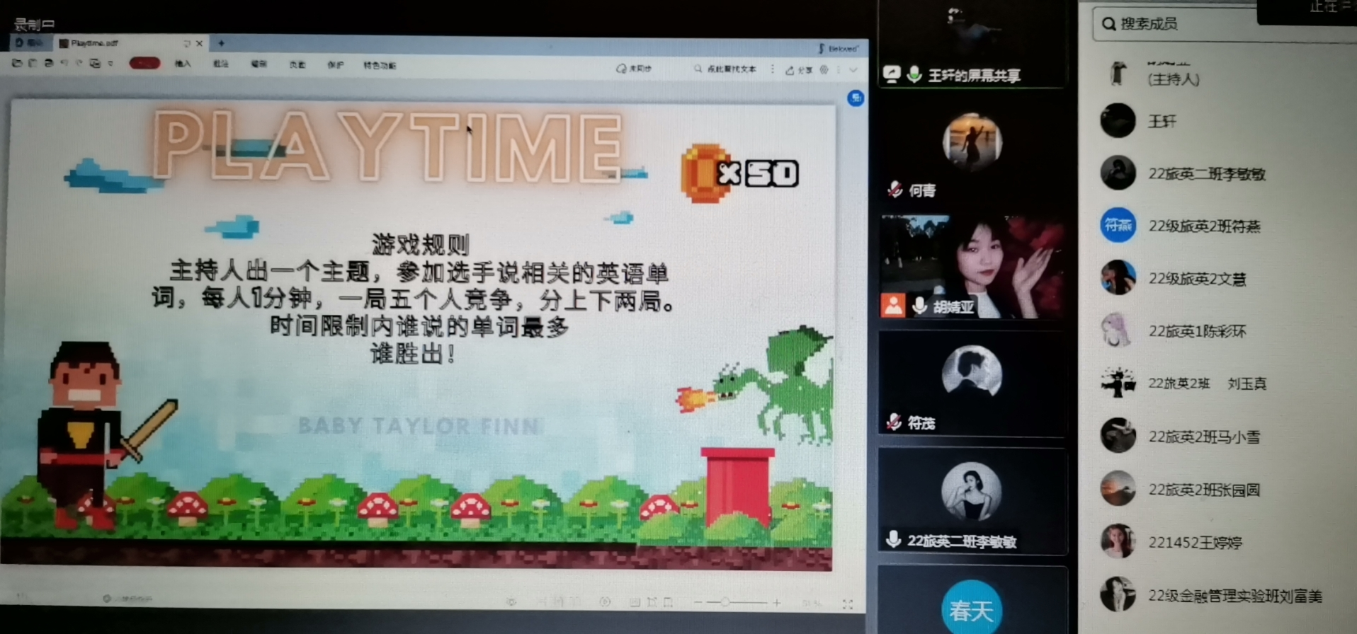 现在我们来到了紧张刺激的游戏环节!大家都十分踊跃地想要参加,这一关主要考验的是同学们的词汇量,但是内心紧张的情绪会影响能否正常发挥,所以调整心态同样是非常重要的因素!无论如何,记住友谊第一,比赛第二。