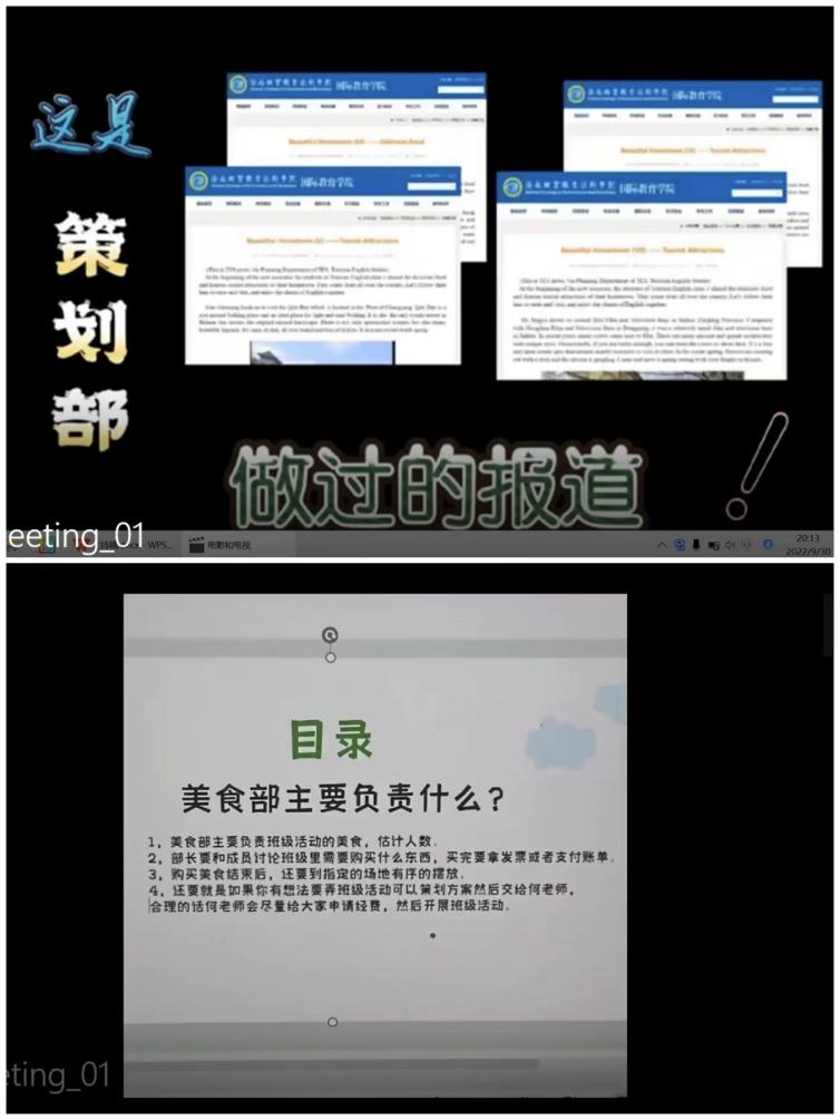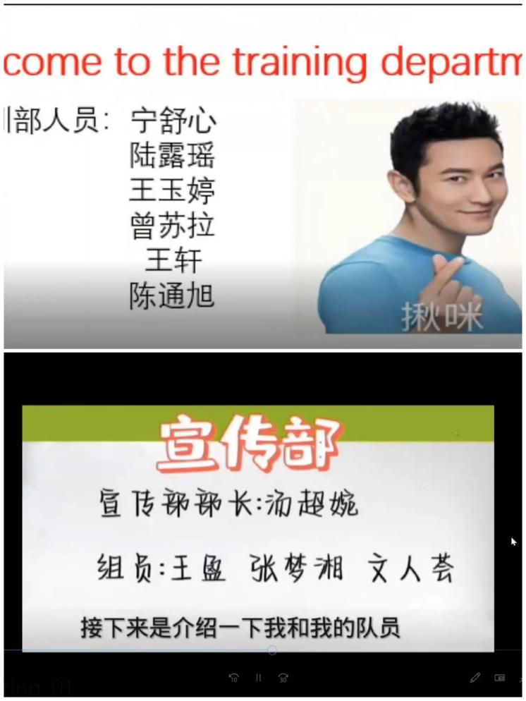 表演间隙旅游英语工作室各部门相继介绍了各自的工作内容与职责,分别有培训部、宣传部、策划部、美食部和旅游部,每个部门都分工明确,各司其职,欢迎各位新伙伴加入!