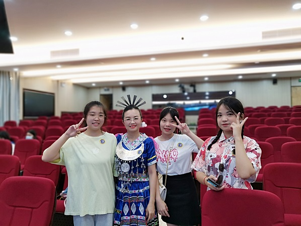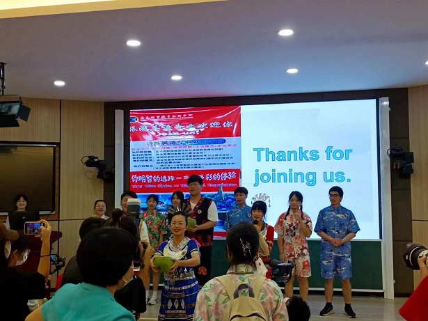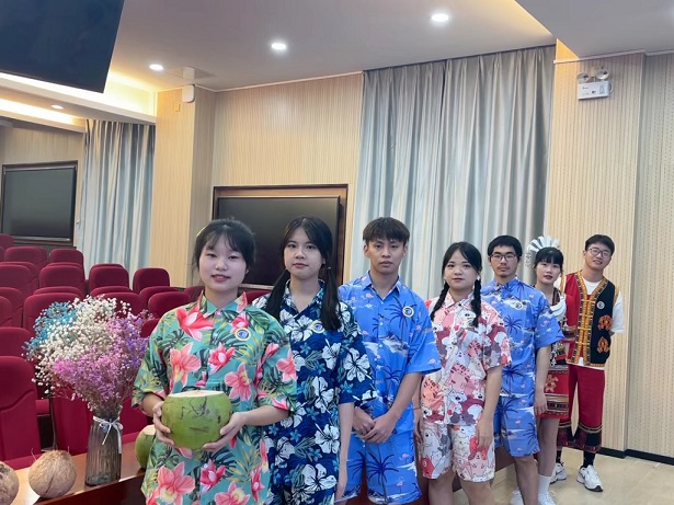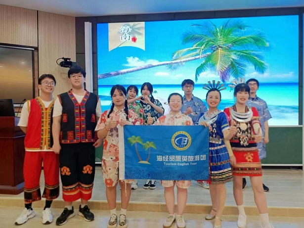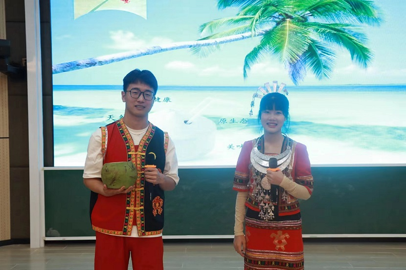 Dressed in Li costumes, the people majoring Tourism English sang an English version of Hainan folk song.
