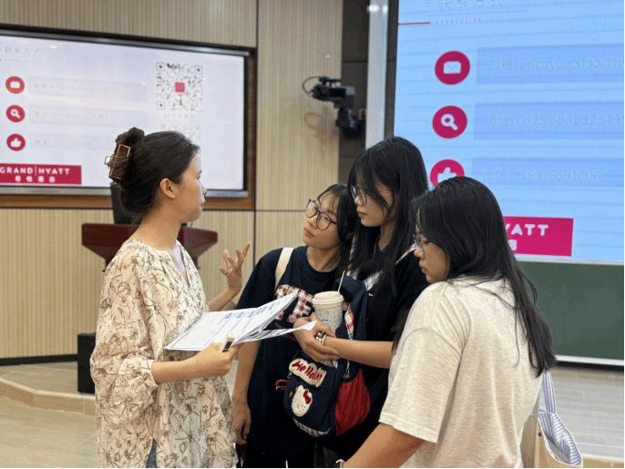 据了解,三亚海棠湾君悦酒店隶属凯悦酒店集团,是全球高端奢华酒店管理集团,以“关怀文化”(Culture of Care)为核心服务理念。此次招聘专场宣讲会提供人力资源部、餐饮部、客房部、康乐部等四个部门的多个岗位,开设线下线上投递简历渠道,负责人与学生面对面交流,让学生提前体验真实职场场景,积累求职经验。