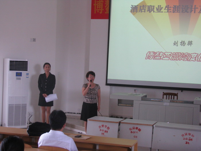 活动第一项由博鳌亚洲湾度假酒店总经理刘扬骅先生做职业生涯设计及职业修炼的专题讲座,刘总经理结合自己职场的亲身经历分析了职业生涯的设计及职场上应注意的问题,从“知识改变命运和“实干照亮人生”两个方面深刻阐述职业生涯的意义,并深入剖析职业品行、职业意识、职业知识、职业情商、职业习惯、职业技巧等问题,较好地帮助学生认清自己的职业定位,为学生正确选择职业指明了方向。