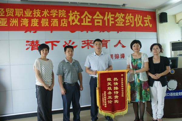 本院4月26日讯(应用外语系李转风报道)2013年4月23日上午,博鳌亚洲湾度假酒店总经理刘扬骅先生向我院赠送感谢信和锦旗。