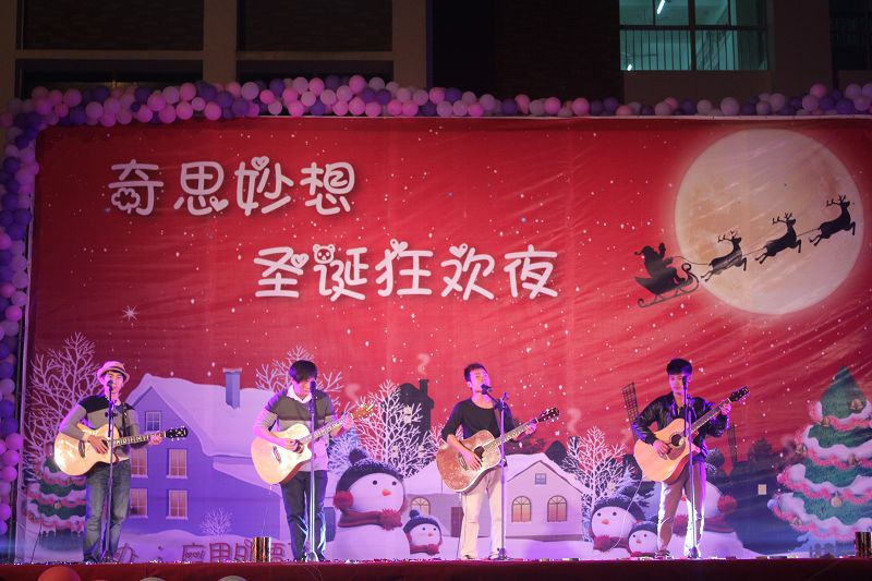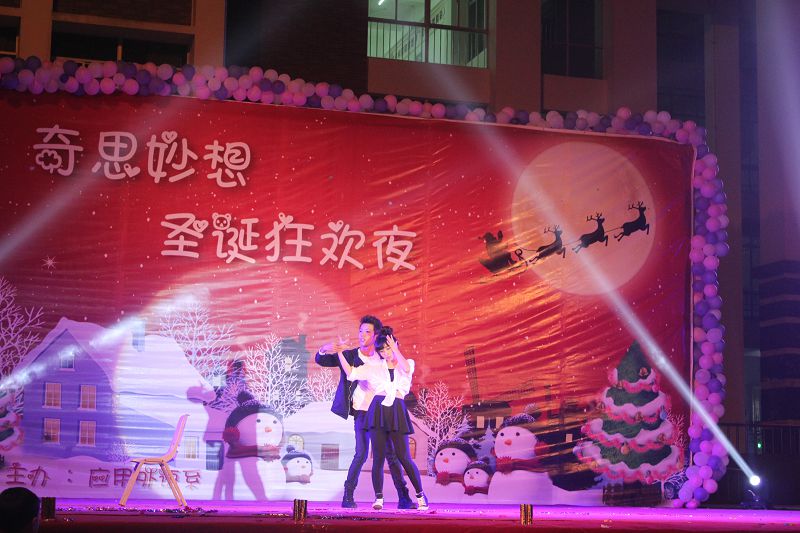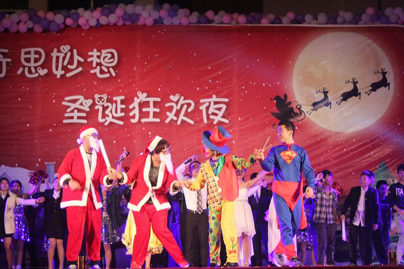 在这辞旧迎新之际,在热情欢快的开场舞《Live While We're Young》中圣诞晚会正式拉开序幕。晚会的节目形式丰富多样,乐器演奏、现代舞、街舞、哑剧等应有尽有。伴随着热烈的掌声,各种节目轮番登场,异彩纷呈。爵士舞《Cry Cry》一下子把现场的热情带动了起来,将晚会推向高潮。而哑剧《理发》更是让人爆笑连连。那搞笑的肢体动作,无不感染在场的每一位观众,牵动着每一个观众的心。年年岁岁花相似,引入沉醉春韵中。歌曲《春天的芭蕾》优雅而不失动感,让现场的观众感受到了古典气息。来自俄罗斯留学生的武术表演《北拳》更是让大家沉浸在浓郁的古代气息里。伴随着结束曲《相亲相爱》,晚会即将进入尾声。无论是哑剧、歌唱、舞蹈,都给我们带来了一幕幕华丽的视觉盛宴。有的动感十足,朝气蓬勃;有的温婉妩媚,婀娜多姿。使观众都陶醉在这音符中。晚会在主持人的祝福以及全体演员、工作人员的欢声笑语中圆满落幕。