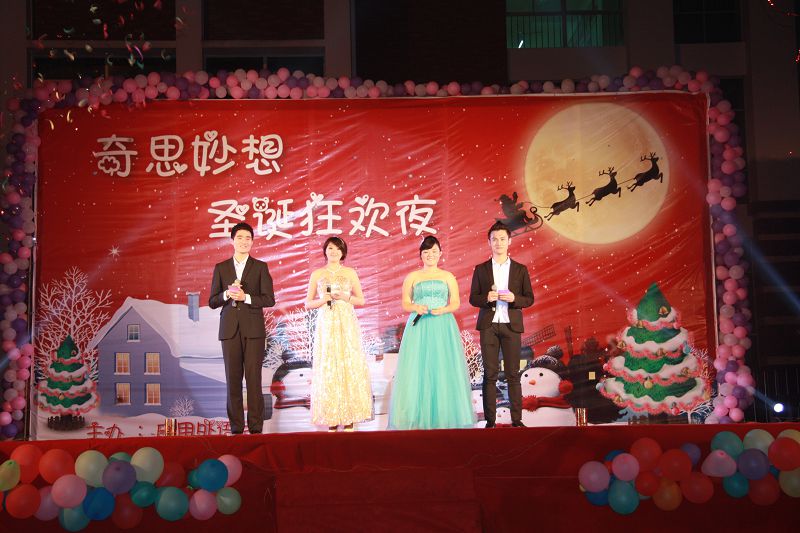 (应用外语系 赵俊贤报道)2013年12月22日晚7点30分,经贸广场上热闹非凡,由应用外语系全体师生筹备一个多月的圣诞晚会在此拉开帷幕。出席本次晚会的领导和嘉宾有学院党委徐畅副书记、应用外语系党总支朱琳书记、应用外语系张春玲主任、学工办副主任郑艳老师、辅导员郭蓉佳老师、代晓明老师以及就业干事李转风老师。