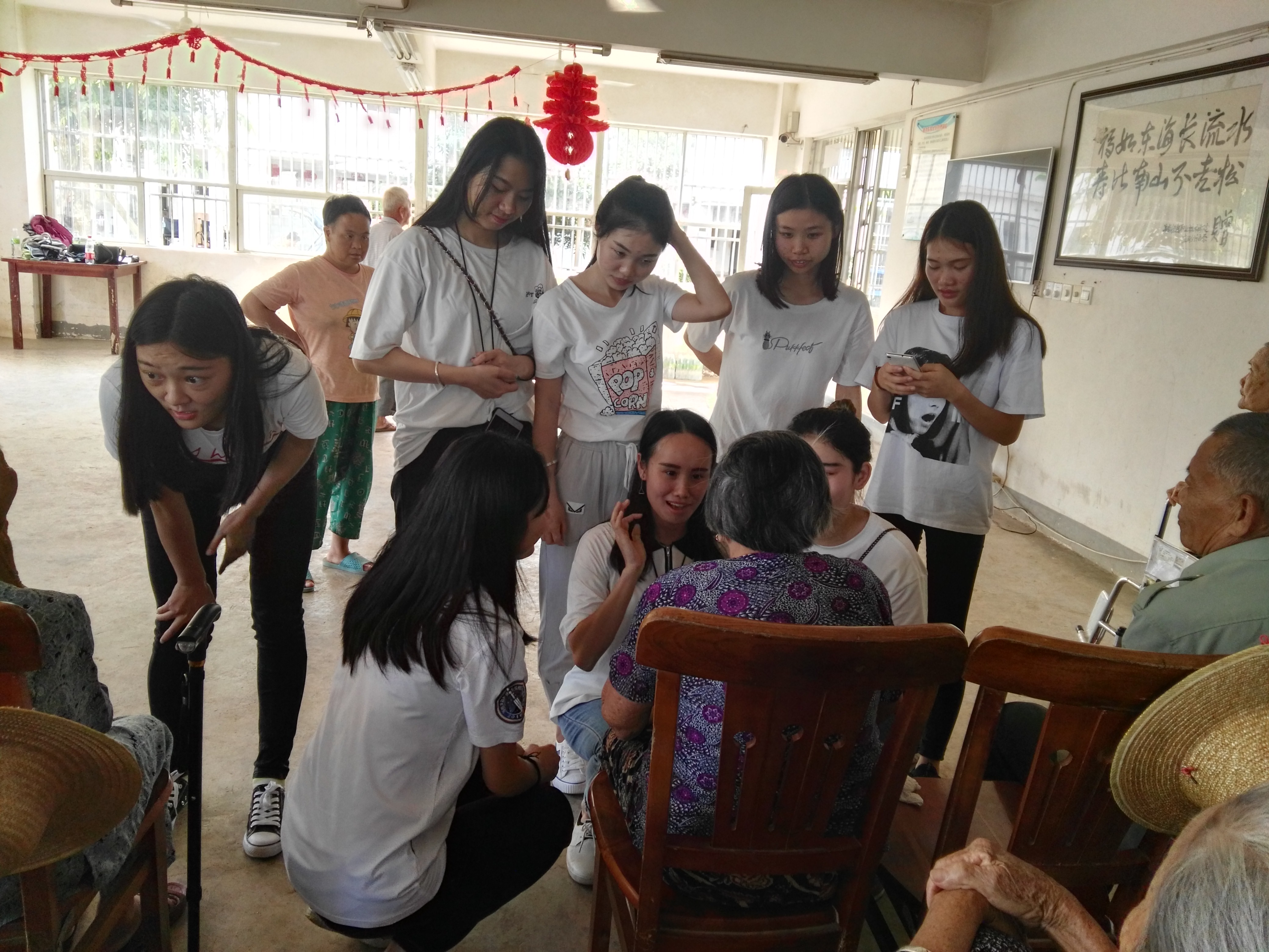 本院4月16日讯(16商英3班黄佳报道) 初夏显凉意,青春暖夕阳。2017年4月16日,国际教育学院16商英3班李大永等九名女同学与何春老师一起赴三江敬老院开展一场温暖人心的敬老爱老志愿活动。
