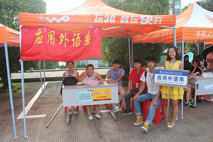 又是一年果飘香,校园处处迎新忙。伴着丝丝凉爽的秋风,一年一度的开学季如期而至。2013年9月7日,校园内拱门林立,彩旗飘扬,横幅高挂,到处一派热烈、喜庆、祥和的气氛,来自全国各地的莘莘学子怀揣成才梦,踌躇满志地来到应用外语系,开始他们期盼已久的崭新大学生活。
