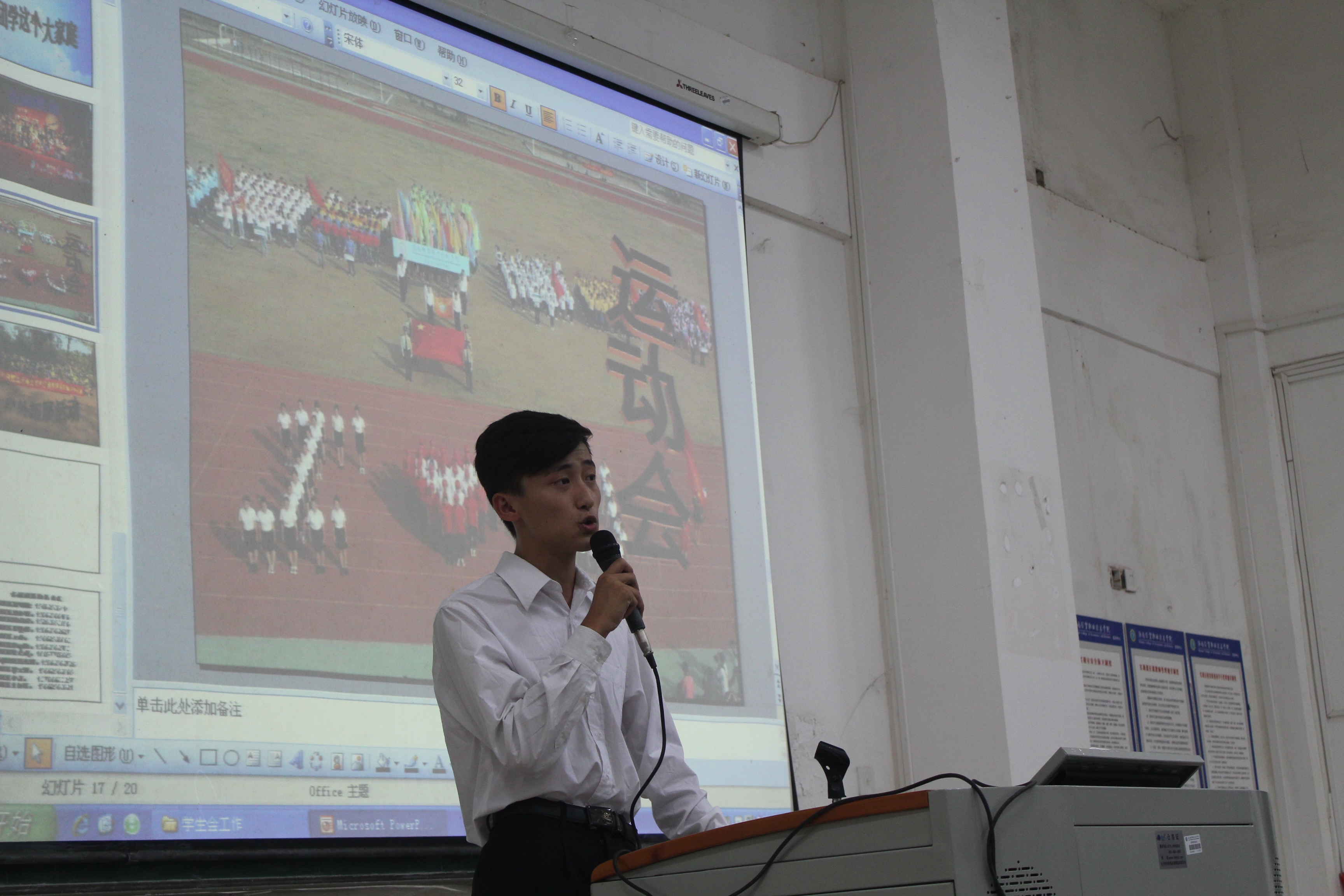 大学的学生会是一个人人向往的组织,它是一个学生自我管理,自我监督的团体。而2014年9月25日晚7:30在1-103教室,应用外语系就举行了一年一度的团学招新晚会!出席此次活动的有应用外语系团总支书记郭蓉佳老师,实习辅导员刘奕显,13级团学干部和14级全体同学!大会开始时,先由学生会主席张浩源为大家介绍了团学的组成是由学生会和社团部组成!接下来,就是团学各部长介绍自己的部门,当团总支副书记郭瑞鹏发言时,他说:“大学不像高中,大学不是人生的前奏,大学就是人生。”得到同学们的强烈共鸣。而社团部部长则给同学们说,只要有能力,有责任感,大学里到处都有你展示的平台!也得到大家的一致认同。团学介绍完毕后,是展示系服的时候。应用外语系的系服不仅代表了外语系这个团体,它更代表了应用外语系做事认真、严谨的风格!这套服装得到了很多同学的好评。会议结束时,同学们纷纷拿入团学的表,那份踊跃显示出了新一代青年的热情和勇敢。在此,祝愿14级团学招新取得圆满的成功,也祝愿同学们都能进入自己理想的部门。迈出第一步,展现完美人生。