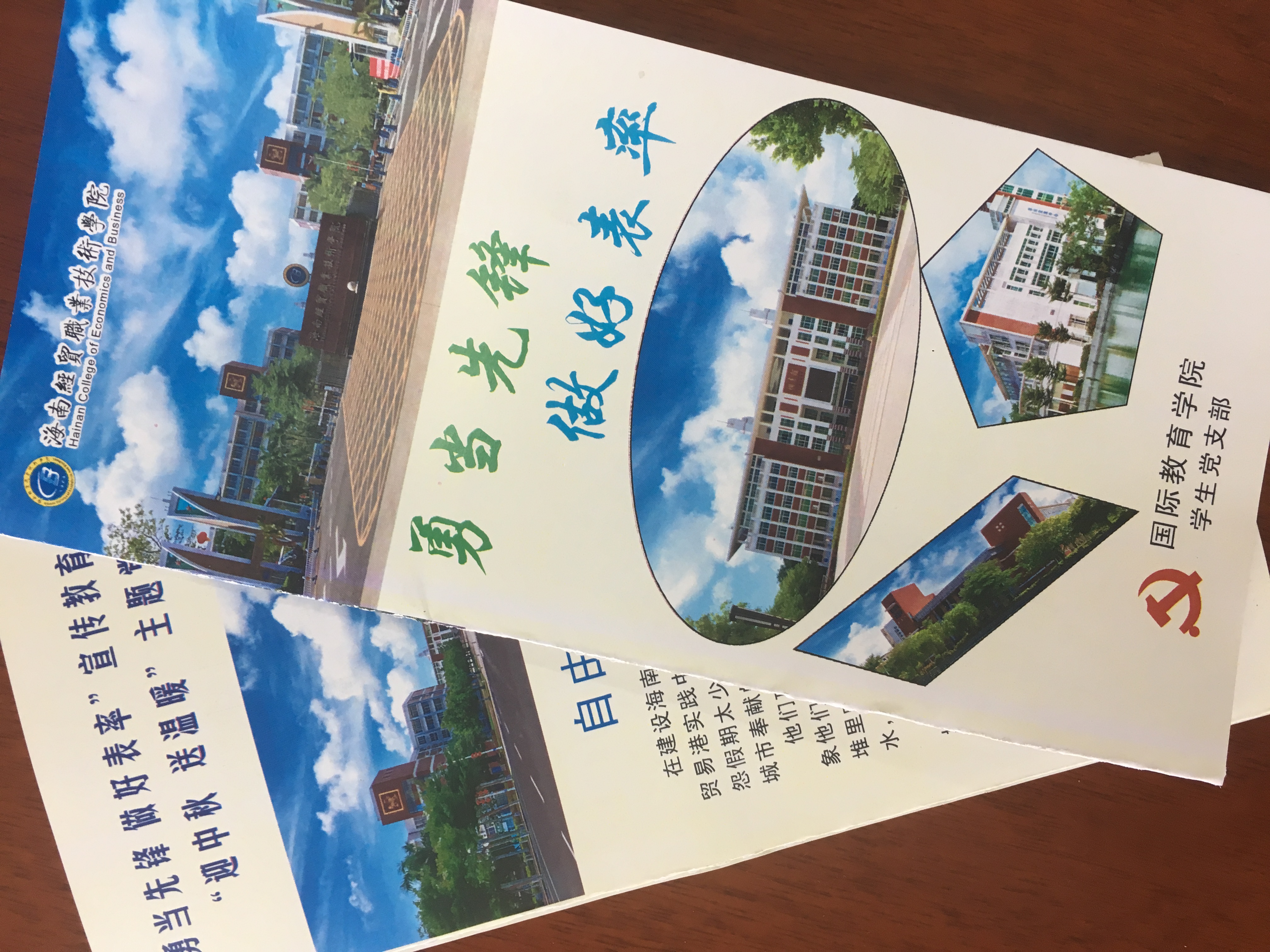 为深入学习贯彻习近平新时代中国特色社会主义思想和党的十九大精神,进一步领会习近平总书记在庆祝海南建省办经济特区30周年大会上的重要讲话精神,根据学校《关于开展“在建设海南自由贸易实验区和中国特色自由贸易实践港中勇当先锋、做好表率”专题活动实施方案》的通知要求,9月24日,正值中秋佳节,国际教育学院学生党支部来到海口市春光集团公交车站旁的环卫工集合地点,开展了“勇当先锋,做好表率”宣传教育暨“迎中秋,送温暖”主题党日活动。支部全体党员和部分入党积极分子参加了本次活动。