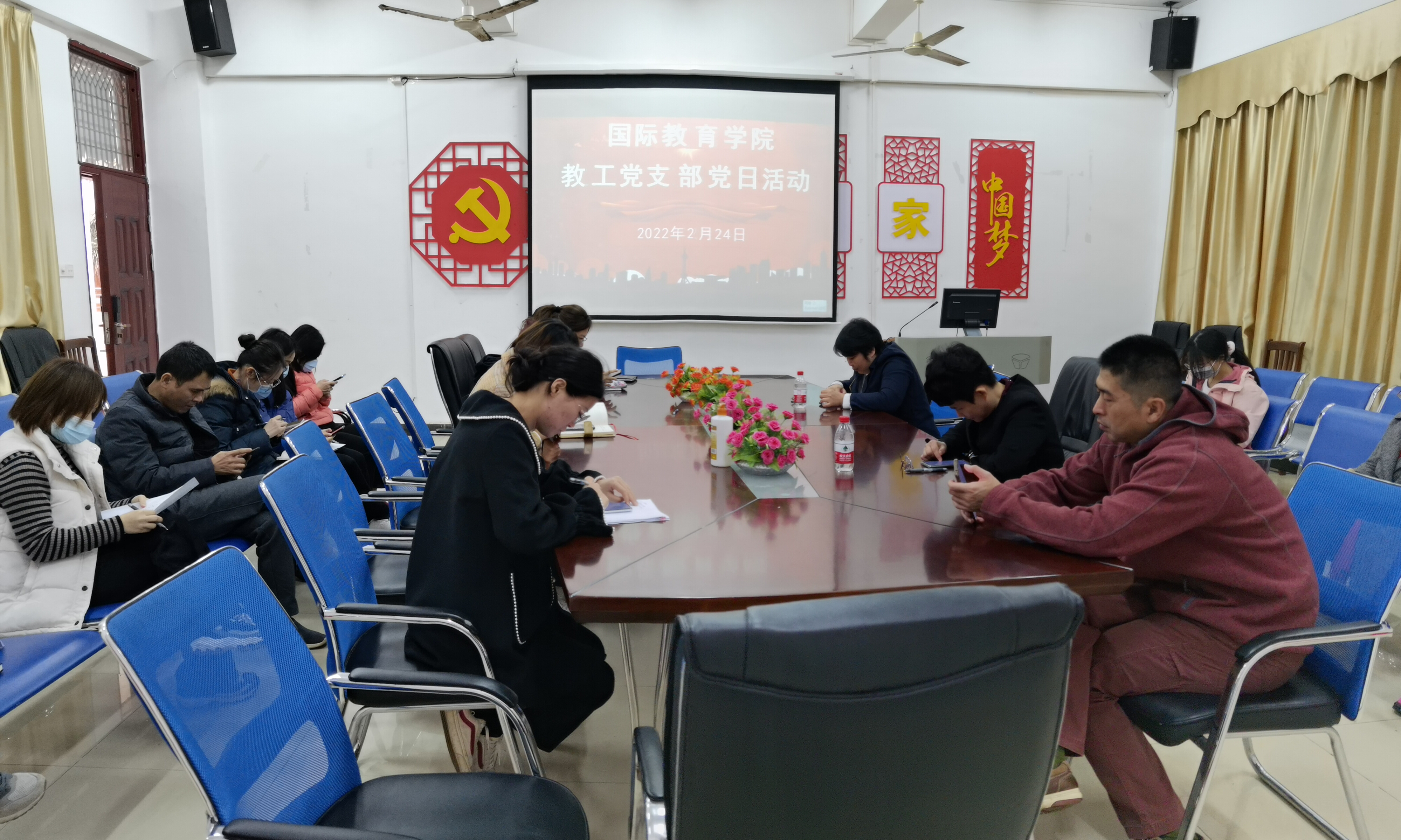 2022年2月24日下午四点半,国际教育学院教工党支部全体党员在1-323会议室举行了“学习强国APP专项知识答题”主题党日活动。
