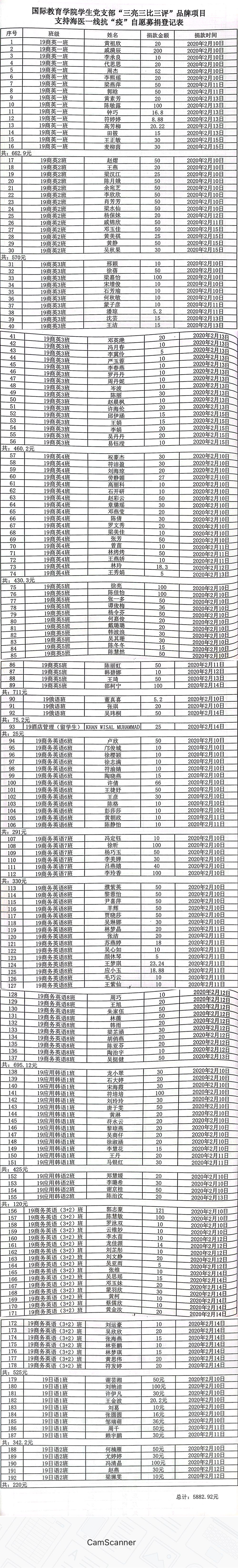 支持海医一线抗“疫”自愿募捐登记表——国际教育学院学生党支部“三亮三比三评”品牌项目