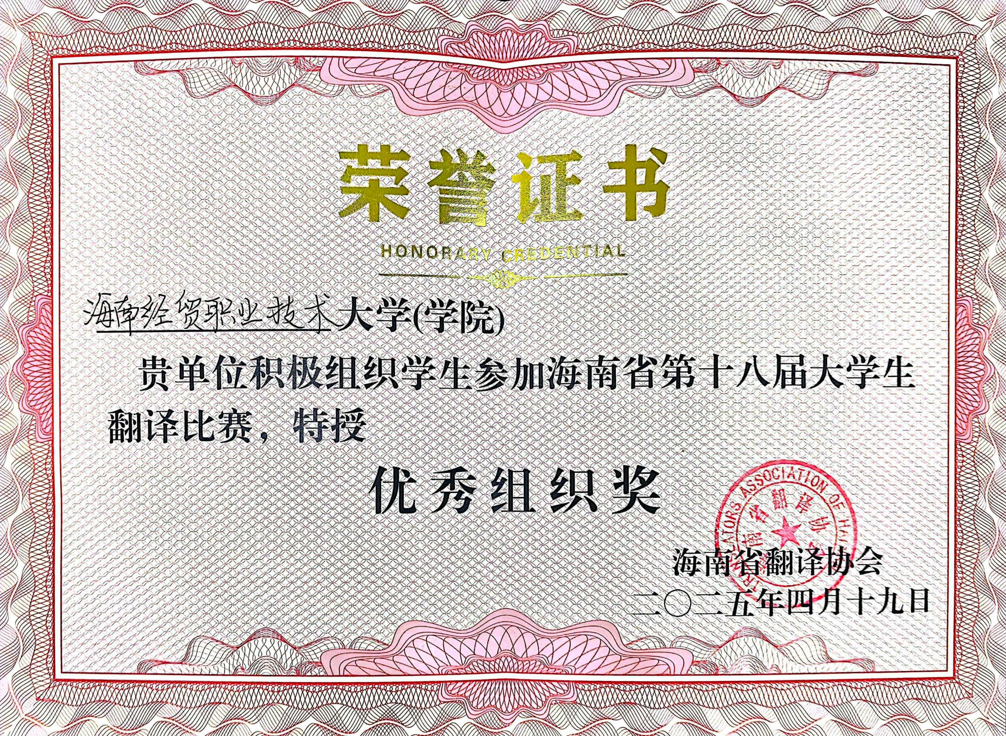 2025年4月19日,由海南省翻译协会主办的海南省第十八届大学生翻译比赛圆满落幕,beat365官方网站参赛学生凭借扎实学识,稳定发挥,摘得两项一等奖,三项三等奖。其中,单纯获英汉专科组一等奖,梁国鹏获日汉专科组一等奖,曾佳心获英汉专科组三等奖,刘承一获日汉专科组三等奖,郑雪琴获俄汉专科组三等奖。