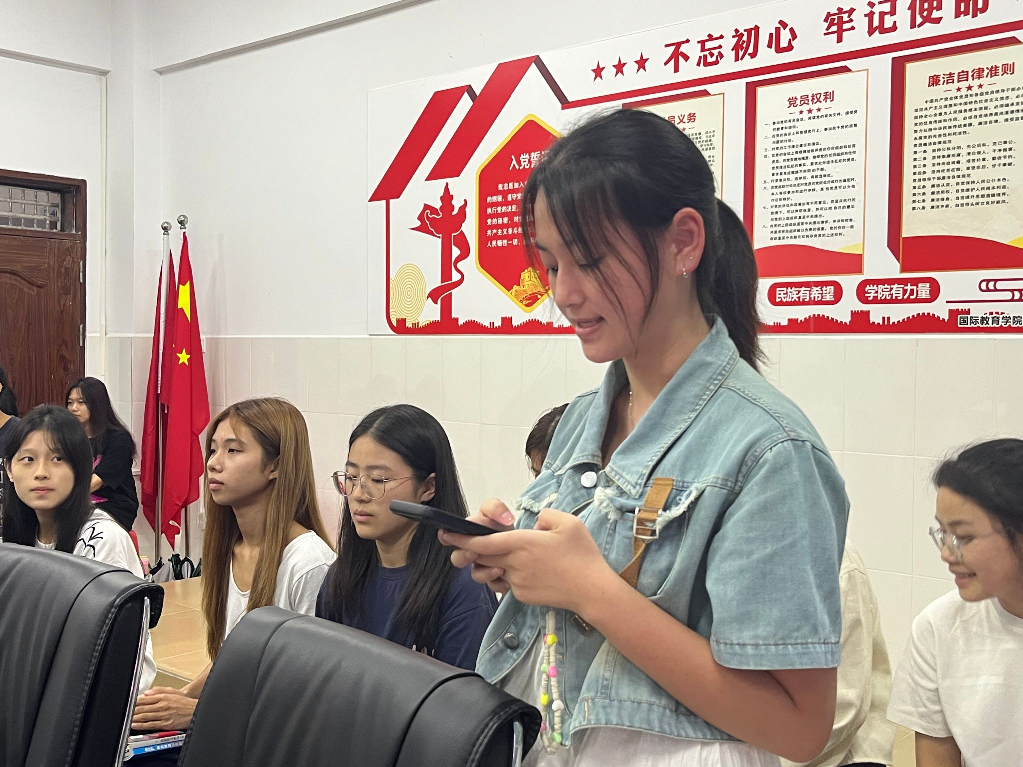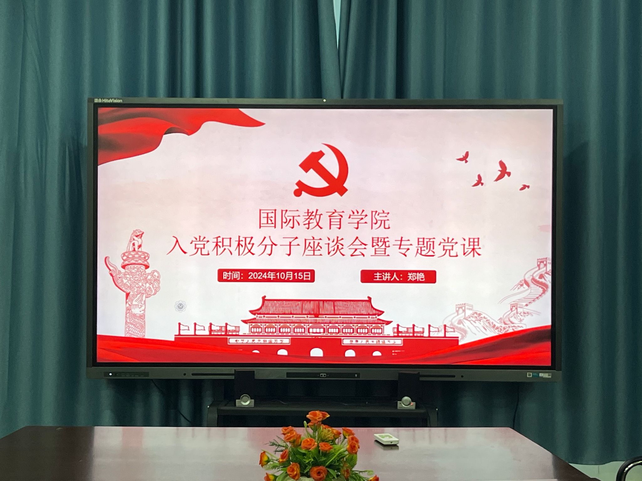 为加强入党积极分子的教育培养工作,提高党员发展质量,端正入党动机。2024年10月15日,国际教育学院学生党支部召开入党积极分子座谈会。学院党总支副书记郑艳,学生党支部书记崔增锐、组织委员肖意、宣传委员韩笑出席会议。会议由党支部书记崔增锐主持,学生党员和入党积极分子共30余人参加.