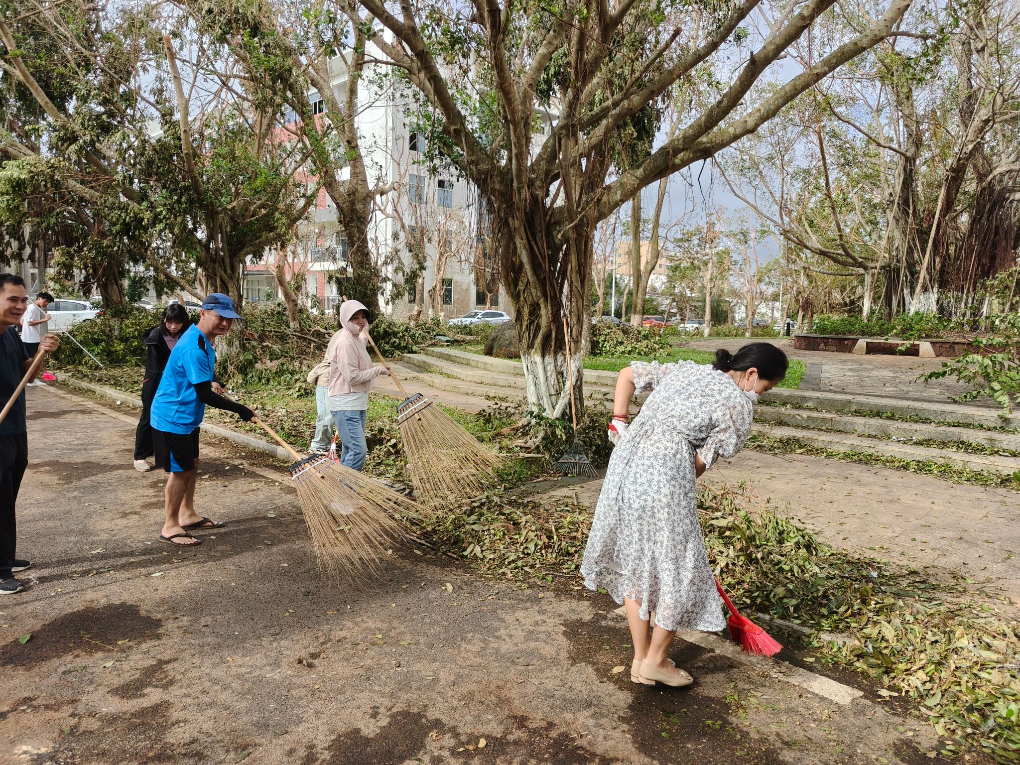 在台风“摩羯”肆虐过后,国际教育学院全体教师展现出了非凡的团结与担当精神,迅速响应,积极投入到救灾与校园重建的艰巨任务中。党总支书记于勇同志以身作则,亲自挂帅,带领二级学院领导班子成员及全体教师和学生志愿者,不畏艰难,顶着炎炎烈日,深入受灾一线,用实际行动诠释了责任与奉献。