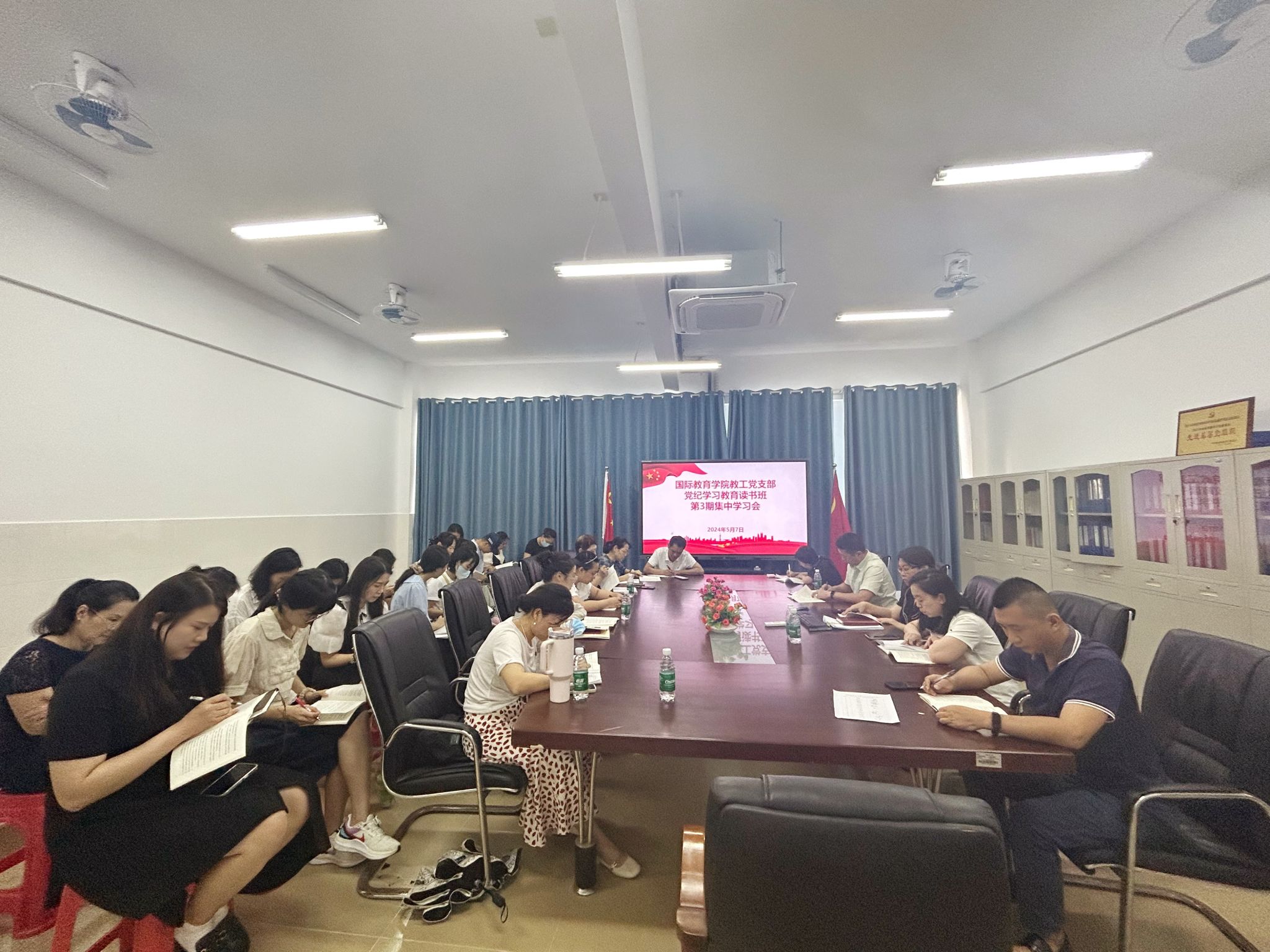 2024年5月7日下午,国际教育学院教工党支部在5-405开展了《中国共产党纪律处分条例》第三期集中学习会。本次学习会由韩大伟、李红梅、易水涵、向梅四位同志领学,全体党员集中学习《条例》第三章和第四章。