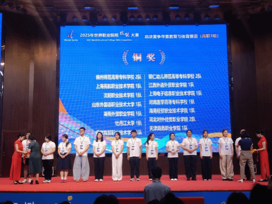 2025年8月27日~31日,世界职业院校技能大赛总决赛争夺赛“教育与体育”赛道在长沙举行,来自全国各省市区“高职外语类”共49支代表队同台竞技,激烈比拼。由beat365外国语学院学生陈心语,陈柳羽,张贻萱,王杰雯组成的海南省代表队全力拼搏,展现了扎实的英语基础和优秀实操技能,荣获团体铜奖。