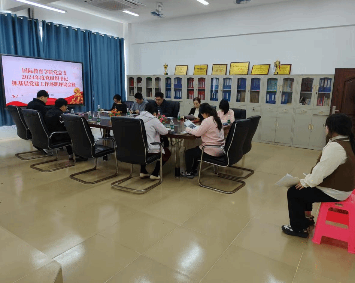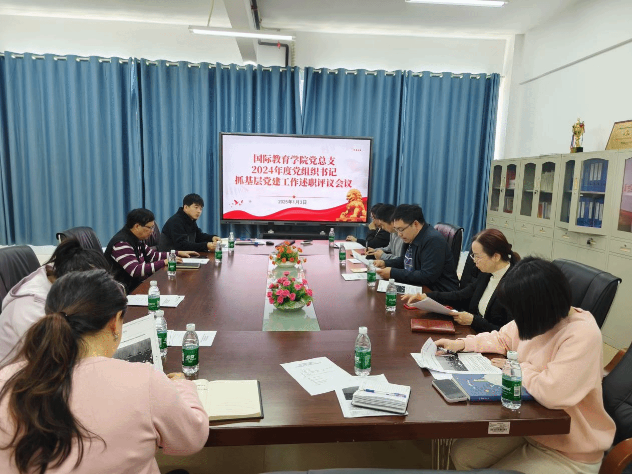 2025年1月3日,国际教育学院党总支在5-405会议室举行2024年党总支书记抓基层党建工作述职评议会议,会议由党总支书记于勇主持,韩大伟院长、郑艳副书记,刘莉副院长、教工支部书记黎瑛同志、学工支部书记崔增锐同志、党政办主任邱裕植老师、学工办主任韩笑老师以及部分教工党员和学生党员参加了此次会议。