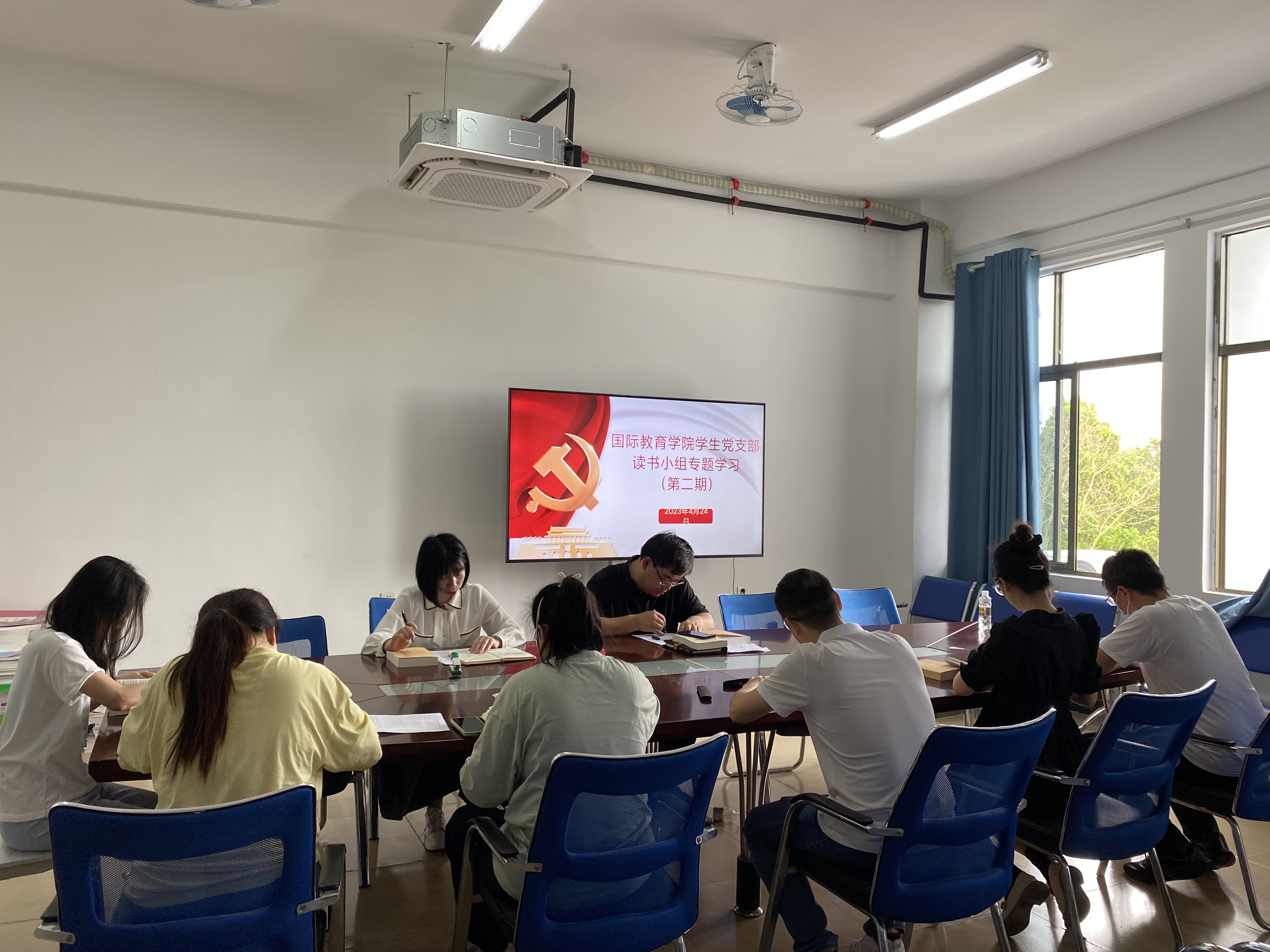 4月24日上午,国际教育学院学生党支部在5-411开展学习贯彻习近平新时代中国特色社会主义思想主题教育读书小组的第二次专题学习,集中学习《习近平著作选读》,并分享学习心得。支部全体党员参加本次学习会,党总支副书记、学生党支部书记郑艳主持会议。