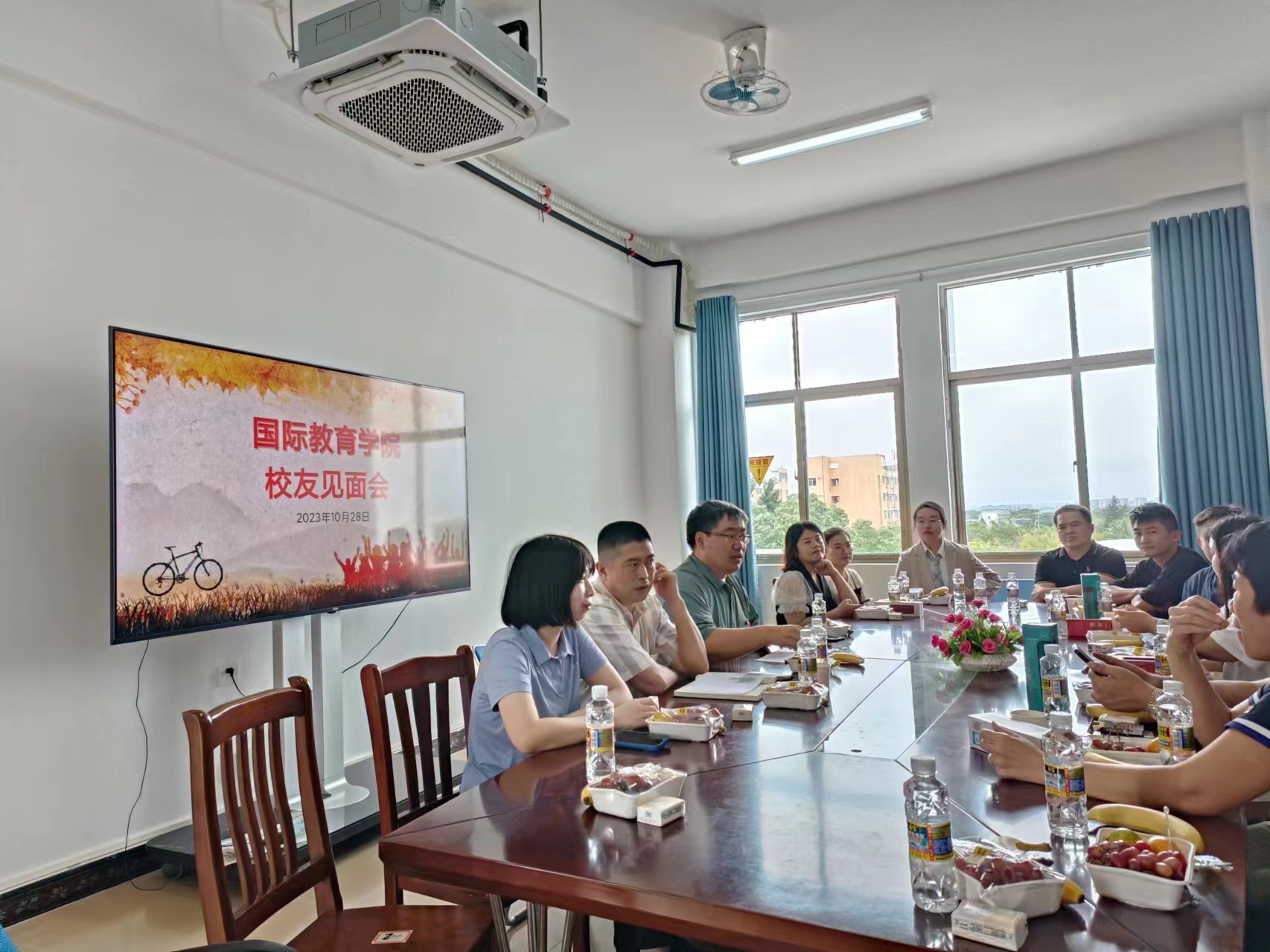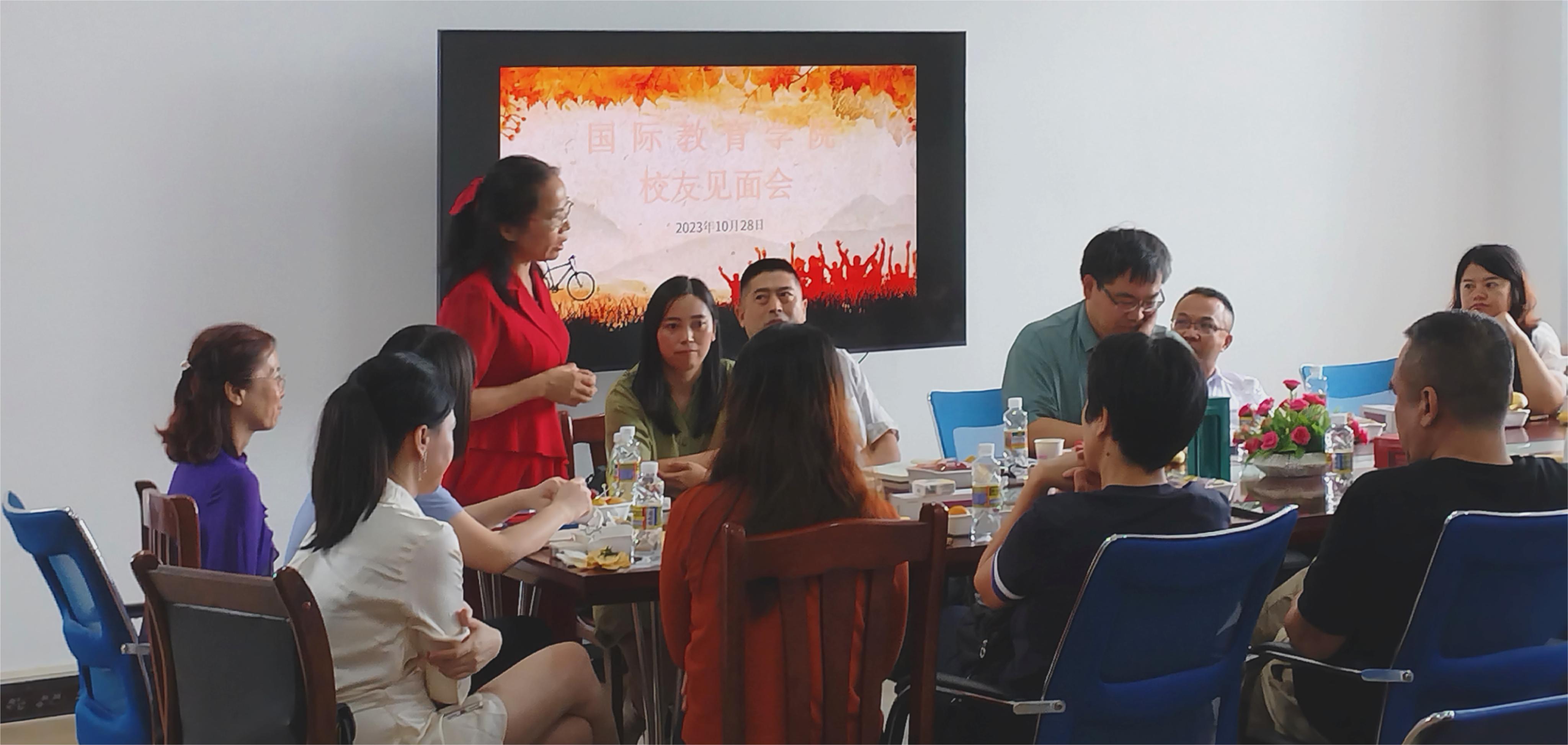 中午,校友代表陆续来到国际教育学院进行参观,他们相互问候,亲切攀谈。会议开始,