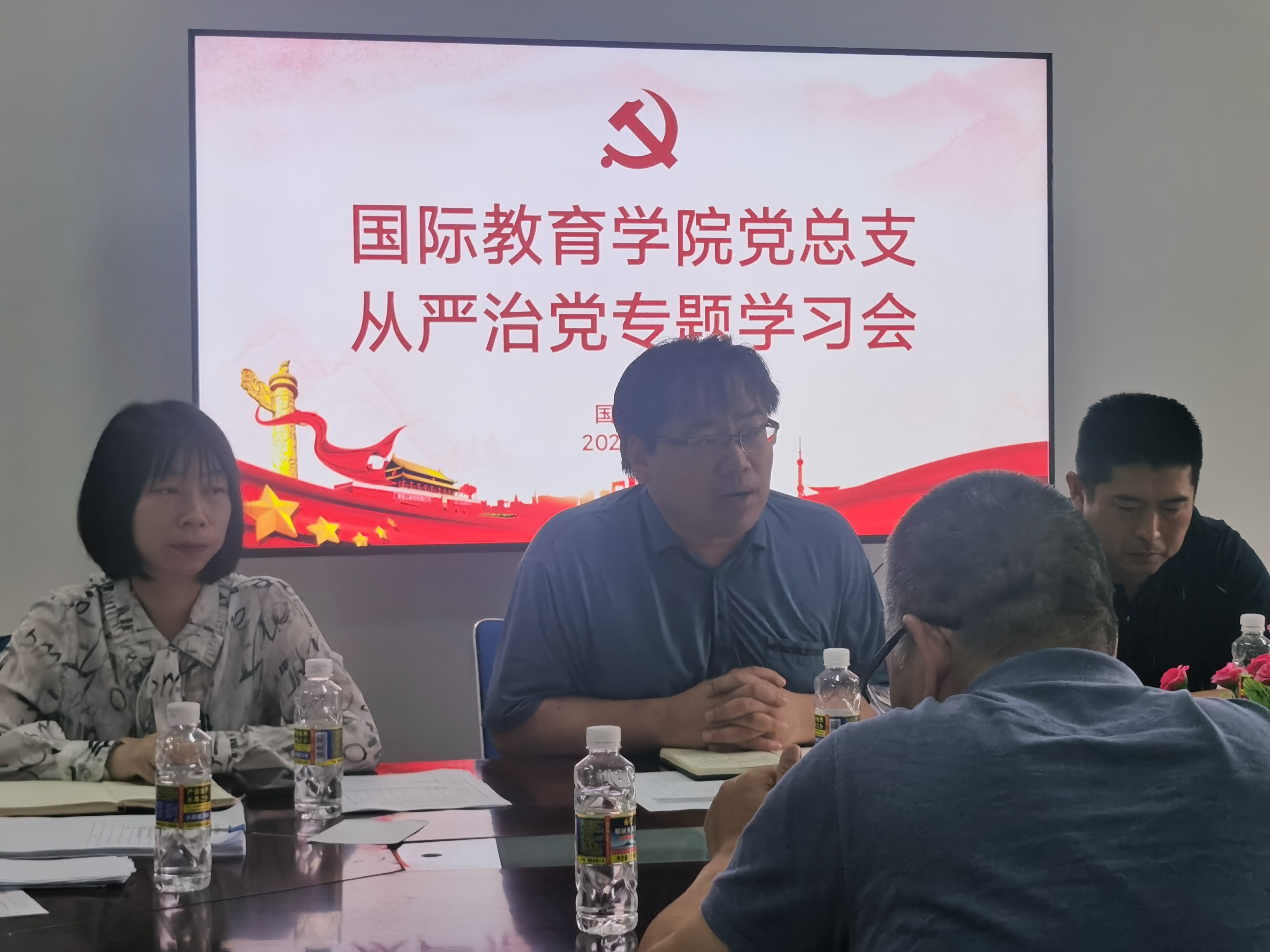 国际教育学院党总支书记于勇发表讲话,他指出,全面从严治党是新时代党治国理政的一个鲜明特征。全面从严治党,是新时代赶考路上中国共产党保持先进性和纯洁性的必然要求,是新时代赶考路上提升凝聚力和战斗力的有力保证。习近平总书记关于全面从严治党的重要论述,思想深邃、内涵丰富,具有很强的政治性、理论性、指导性、针对性。全体教师党员要深入学习领会,准确把握核心要义。