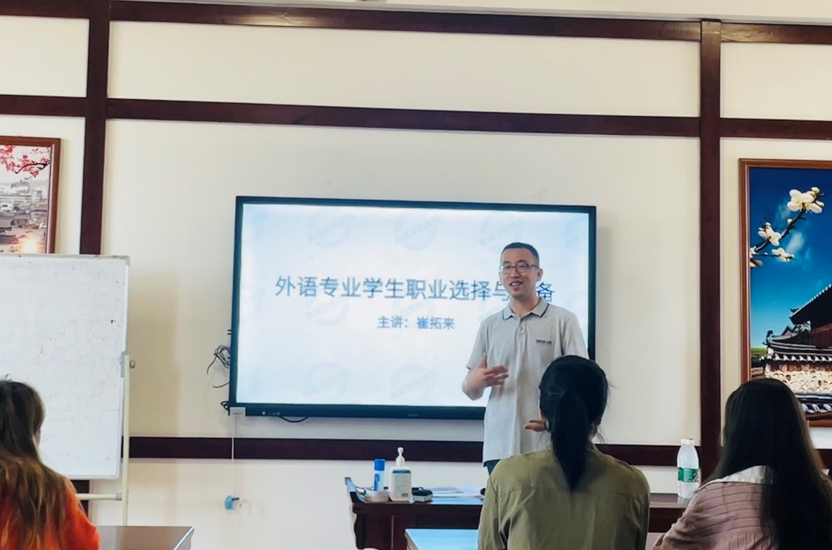 2023年3月28日,原上海工商外国语职业学院韩语专业主任、上海炼极文化咨询有限公司创始人崔拓来博士应邀为我院学生做了《外语专业学生职业选择与准备》专题讲座,2022级、2021级学生聆听了此次讲座。