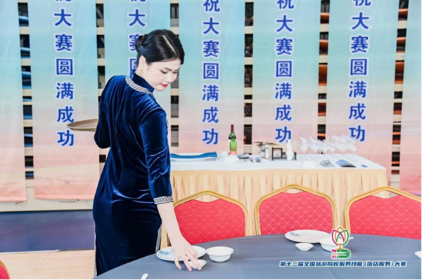 21级商务英语3+2班陈雨婕 中餐宴会摆台赛项一等奖