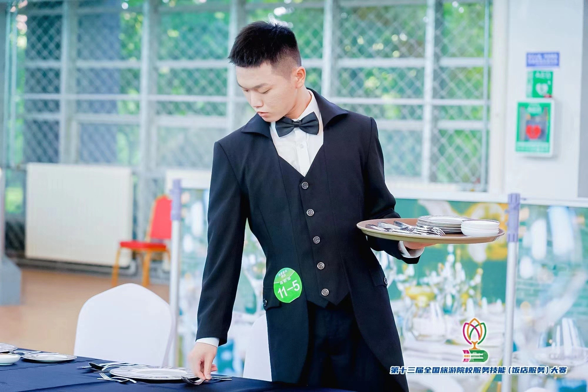 21级商务英语3+2班李政阳 西餐宴会摆台赛项一等奖