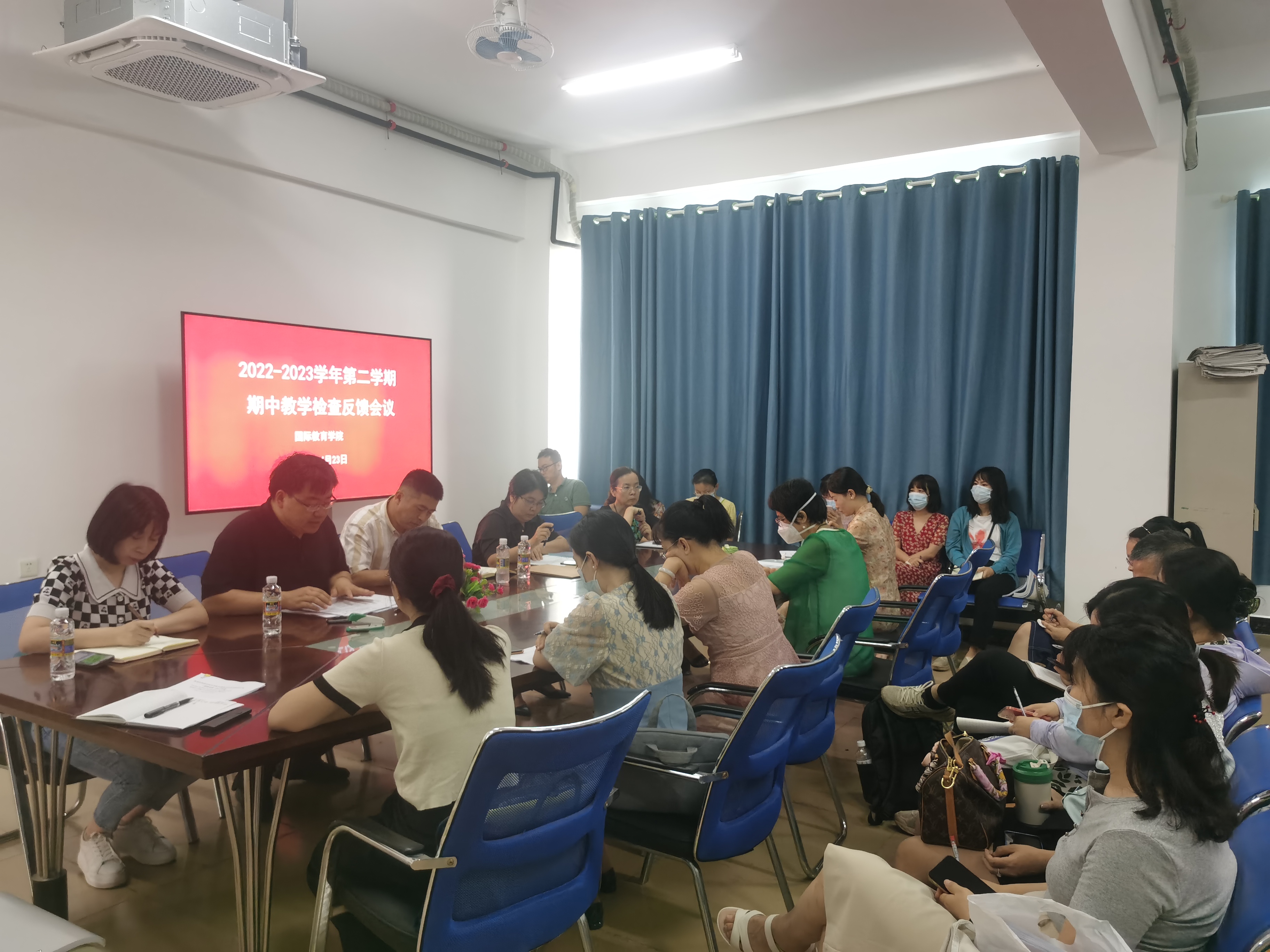 2023年4月23日下午,国际教育学院召开2022-2023学年第二学期期中教学检查反馈会议,国际教育学院党总支书记于勇,院长韩大伟,副院长黎瑛、刘莉,党总支副书记郑艳出席会议,全体教师参加本次会议。