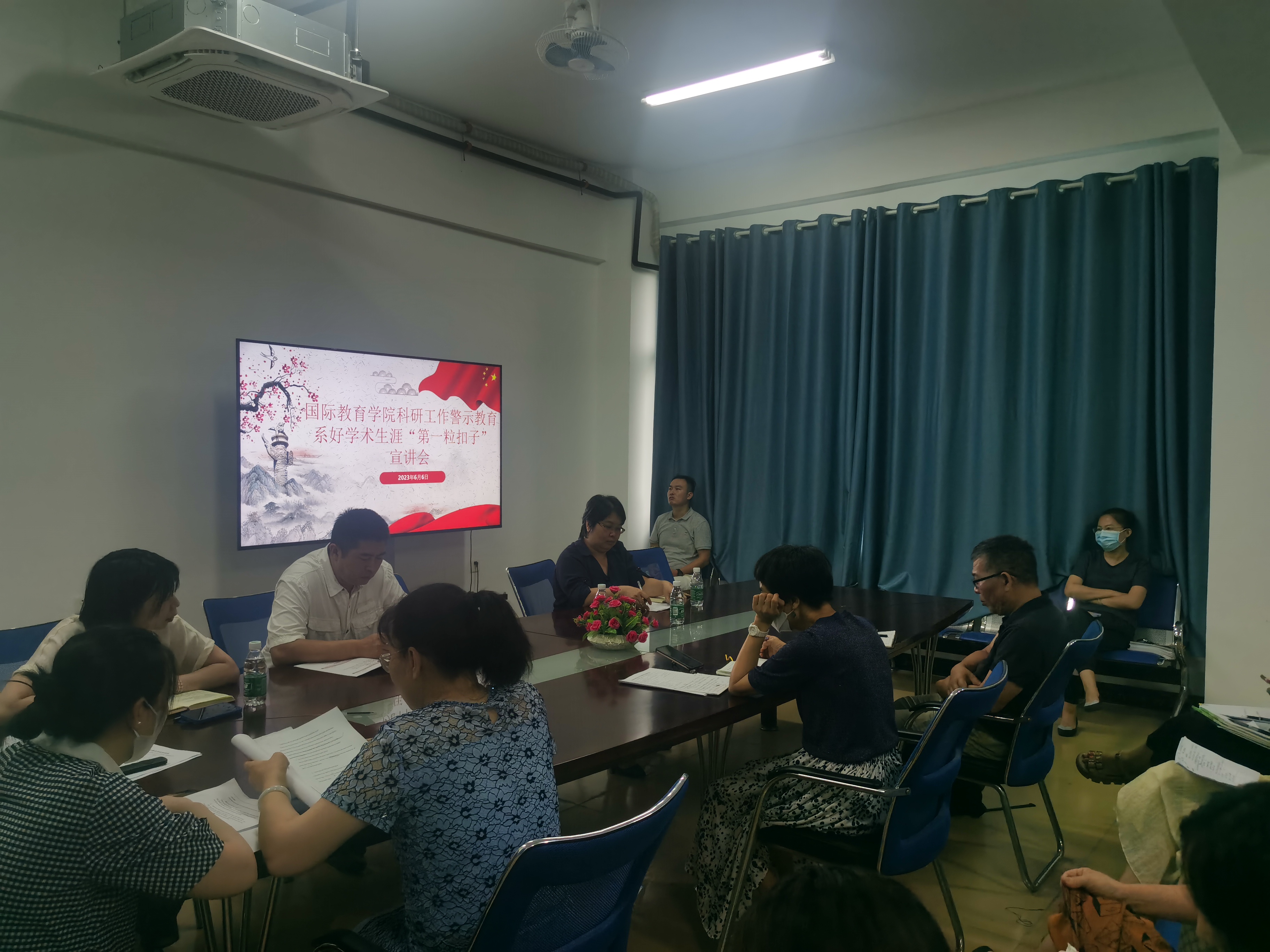 国际教育学院院长韩大伟宣读了近年来教育部和科技部通报的科研诚信案例调查处理结果,通过运用学术不端案例,开展反面典型警示教育,充分发挥了预防、警示、震慑和教育作用。