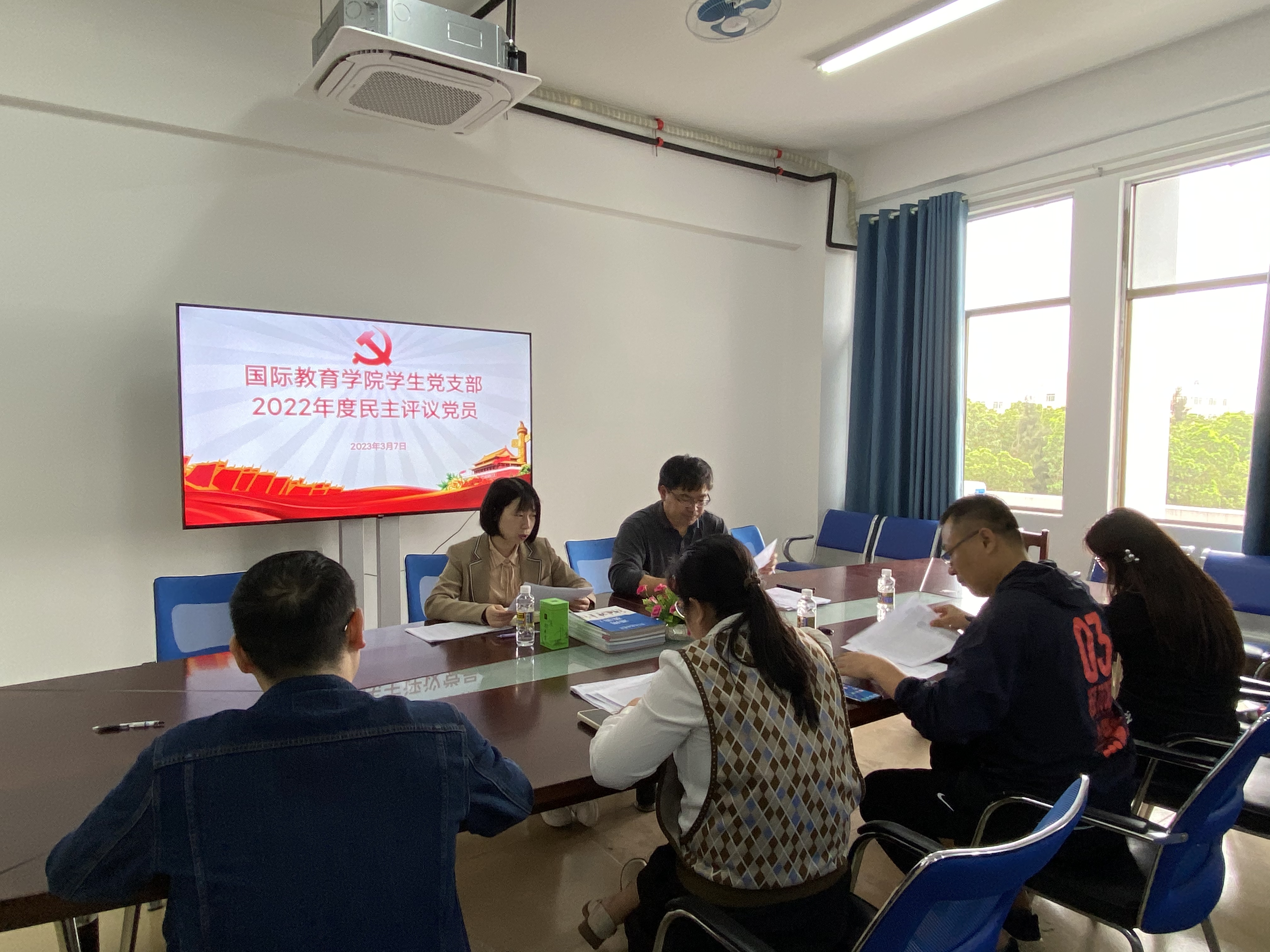 2023年3月7日,国际教育学院学生党支部在5-405党员之家召开2022年度组织生活会,并开展民主评议党员工作。支部全体党员参加会议,党总支书记于勇出席会议并作点评讲话。会议由党总支副书记、学生党支部书记郑艳主持。