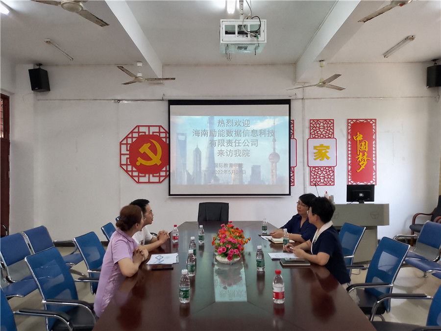 同时,海南励能数据信息科技有限公司来校与国际教育学院院长张春玲、副院长黎瑛、商务英语专业负责人刘莉老师就学生实习就业方面进行洽谈。