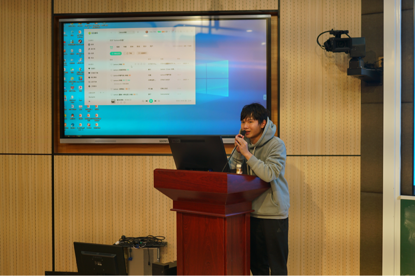 日语演讲大赛开始之前,先由主持人翁心茹和杨鑫介绍了评委老师,并宣读比赛规则,即通过日语语音语调、日语词汇语法表达、演讲内容结构、日语表达能力四个方面,全方位考察学生的日语应用水平。宣布比赛开始之后,由大一新生21级日语2班的周茂彪同学带来的米津玄师经典歌曲《lemon》为选手应援,期待学长学姐出色的发挥。