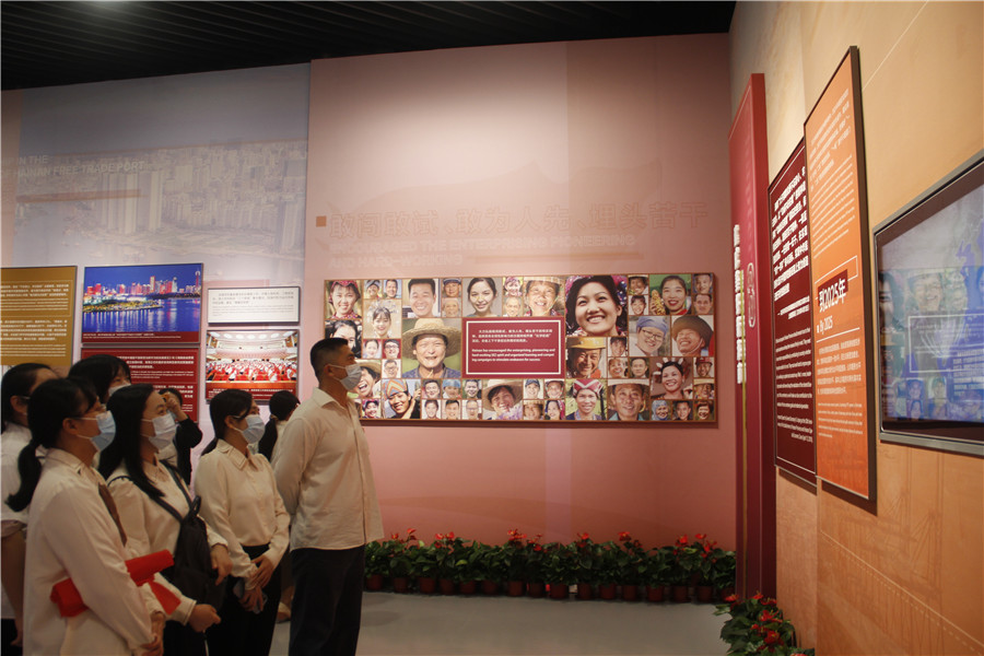 展览分为序厅、领导关怀、奋进历程、全面深化改革开放试验区、国家生态文明试验区、国际旅游消费中心、国家重大战略服务保障区、党建引领海南自由贸易港建设、建成美好新海南、畅想自贸港、童心绘未来、后记等十一部分。展览使用文字、图片、图表、模型、实物展品、多媒体、 场景还原等多种形式,展出面积 1435 平方米。